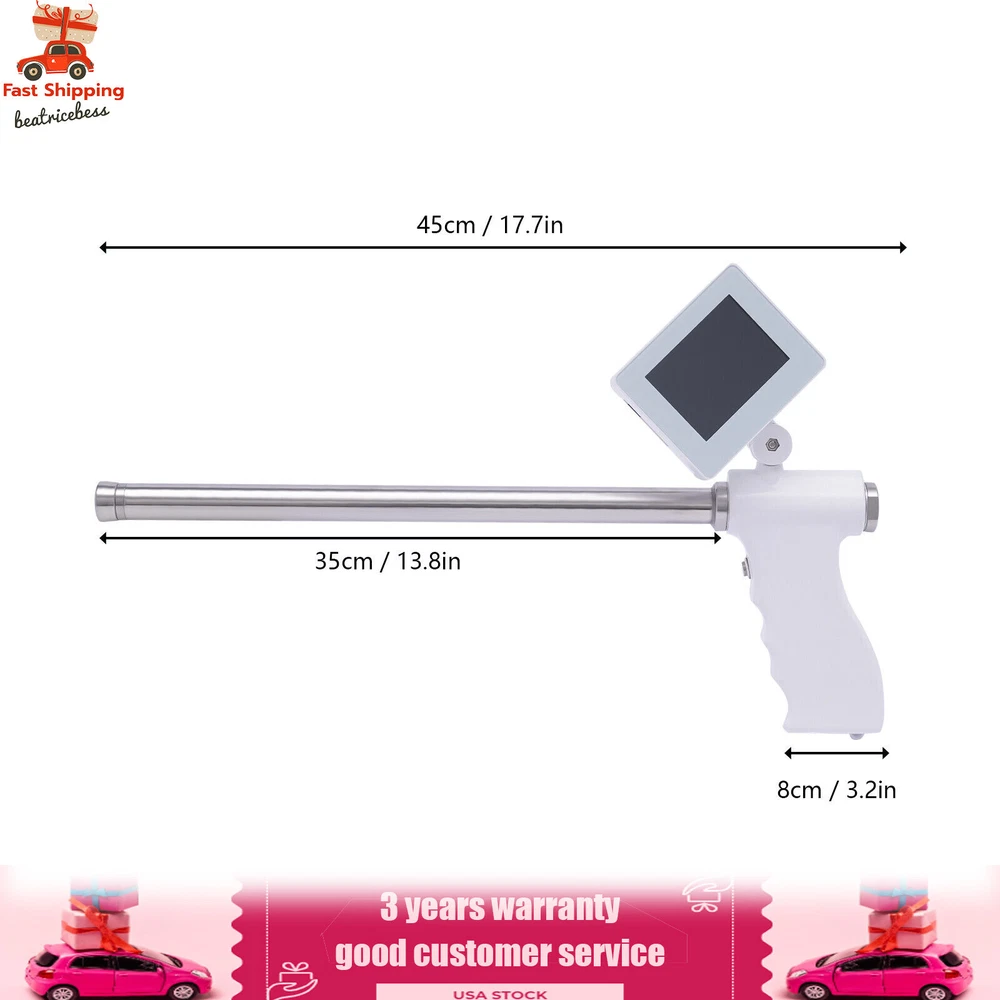 Visual Insemination Gun Cattle Cows for Livestock Artificial Insemination Kit HD Insemination Kits for Cows Cattle Visual Insemination Gun & Adjustable Screen Description: Visual Insemination Gun for Cattle, Changing the Traditional Way of Insemination, the Built-in Air Channel Handle Is More Convenient, Metal Expansion Head, Which Can Be Disassembled Separately for Easy Cleaning, 15 Million Super Clear Screen, Rotatable,304 Medical Stainless Steel Probe Rod. Specifications: Total Length: 450mm Probe Rod Length: 350mm Material of Probe Rod: 304 Stainless Steel Probe Rod Diameter: 16mm Handle Width: 80mm Diameter of Expansion Head: 18mm Expansion Head Length: 12mm Air Passage Diameter: 1 Mm Diameter of Insemination Channel: 6mm Screen Size: 3.5 Inches Resolution: 640x480 Display Screen Adjustment Angle: 120 ° up and down, 360 ° Left and Right Camera Diameter: 3.9mm Storage Space: 32g Camera: 39mm Cold Light Source 180 Degrees Wide Angle Pixels: 15 Million Power Supply: 5v 2a (Rechargeable, Replaceable) Operating Temperature: - 10 ° C-50 ° C Working Humidity: 15-85% Features: Design of Air Passage with Built-in Valve : the Built-in Air Valve Can Blow Away the Water Vapor Caused by the Temperature Difference or the Mucus on the Camera. Rotate the Screen, 120 ° up and down, 360 ° Left and Right : Easy to Watch the Process of Insemination, Teaching Discussion More Convenient. Super Long Standby, Battery Replaceable. Photo Taking and Video Recording , Full Function Support: Video Recording, Photographing, Playback, Image Zooming, Image Output Printing, Clear Record of Each Instant. Safe Operation, Anti Falling Rope Design : Before Holding the Handle, Put on the Wristband First, the Insemination Gun Is Not Easy to Fall off, and the Insemination Process Is More Secure. Portable Vas Deferens for Cattles : Medical Material, Use More Assured, Round Head Design, Do Not Hurt the Uterus, More Safe Insemination. Ultra Clear Screen Insemination More Accurate : Select Ultra Hd Screen, the Display Can Be Compatible with Strong Light, Dark, Cold, Dry, Hot and Humid Working Environment. Packing List: 1 X Cattle Visible Machine Payment Delivery details Terms of sales About us Contact us Payment We accept ebay payment 。 Fees such as import duties, taxes are not included in the item price or shipping costs. These charges are the buyer's responsibility. Delivery details Shipping: 2-9 working days to: USA Terms of sales We maintain high standards of excellence and strive for hundred percent customer satisfaction. Feedback is very important to us. We hope that you contact us immediately before you give neutral or negative feedback, so that we can address your concerns. It is impossible to address issues if we do not know about them! About us Your satis faction is our ultimate goal. We work hard to earn your trust and future business. Our certified technicians have tested each item before shipping. The unit comes with 1 year limited warranty on all manufacturing defects. a) If you receive a defective item, you may return it or ask for a discount. Please contact us within 14 days after you receive the package. b) What you returned must be intact and in its original packaging as re? u. Customer is responsible for shipping costs of the returned item. c) We will cover the cost of shipping back t with the shipping rate indicated in the registration page. We will send you a new unit or refund the full payment you paid. Thank you. Contact us Business Hour Business Hour: Monday To Friday: 8:30 AM to 5:00 PM (Beijing China time) Due to time zones, our reply to your questions may not be immediately. But within above working time, we will reply your email within 24 hours. If it's non-workdays, please kindly be patient and wait till Monday. Please contact us with ebay message. Please feel free to contact us if you have any questions. Monday To Friday: 8:30 AM to 5:00 PM (Beijing China time) Due to time zones, our reply to your questions may not be immediately. But within above working time, we will reply your email within 24 hours. If it's non-workdays, please kindly be patient and wait till Monday. Please contact us with ebay message. Please feel free to contact us if you have any questions. On Dec 25, 2024 at 01:16:34 PST, seller added the following information: