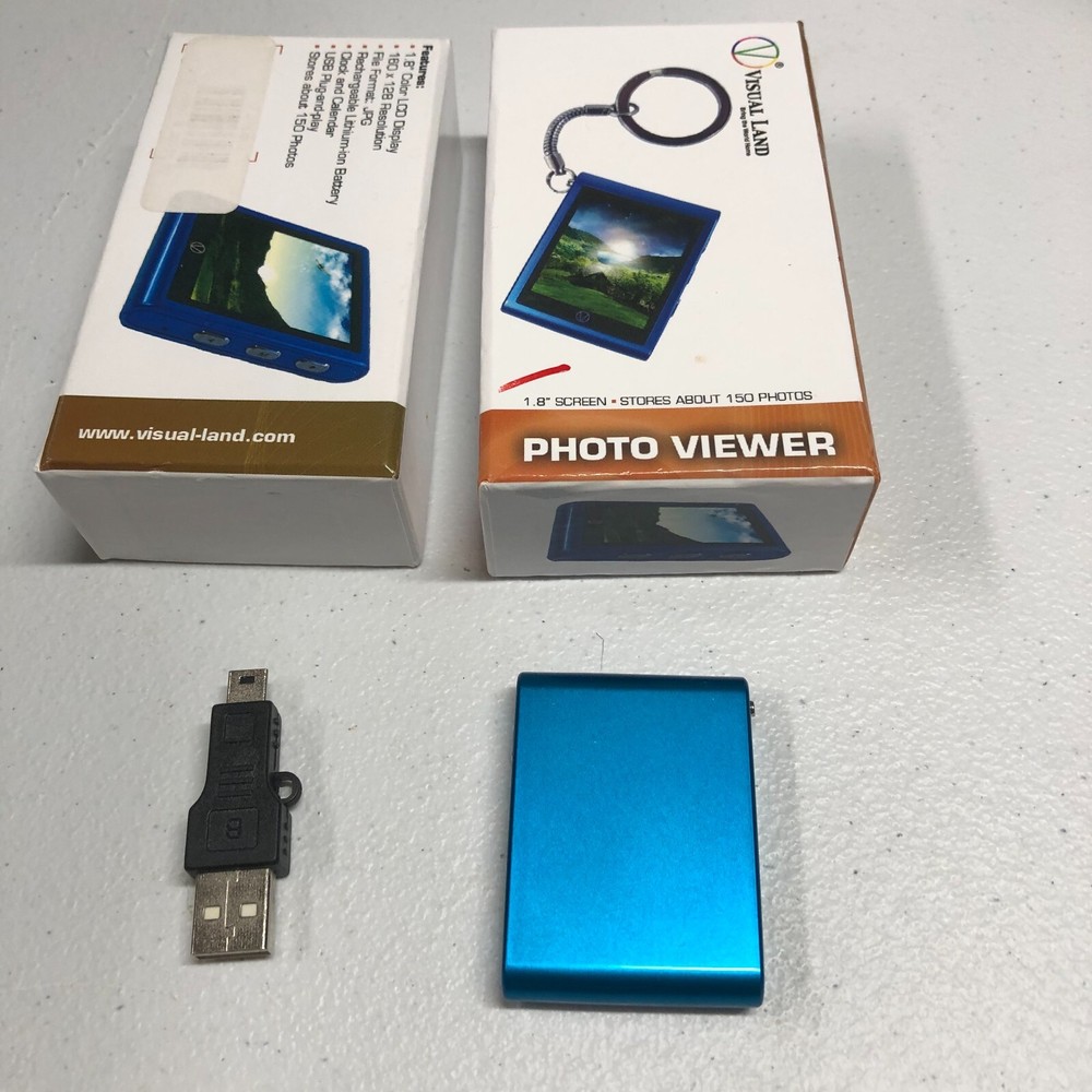 Visual Land 1.8 Inch View Screen 150 Photos Not Tested, Missing Keychain. Small hole is present to put loop in for Keychain. Comes with parts shown on listing photos.