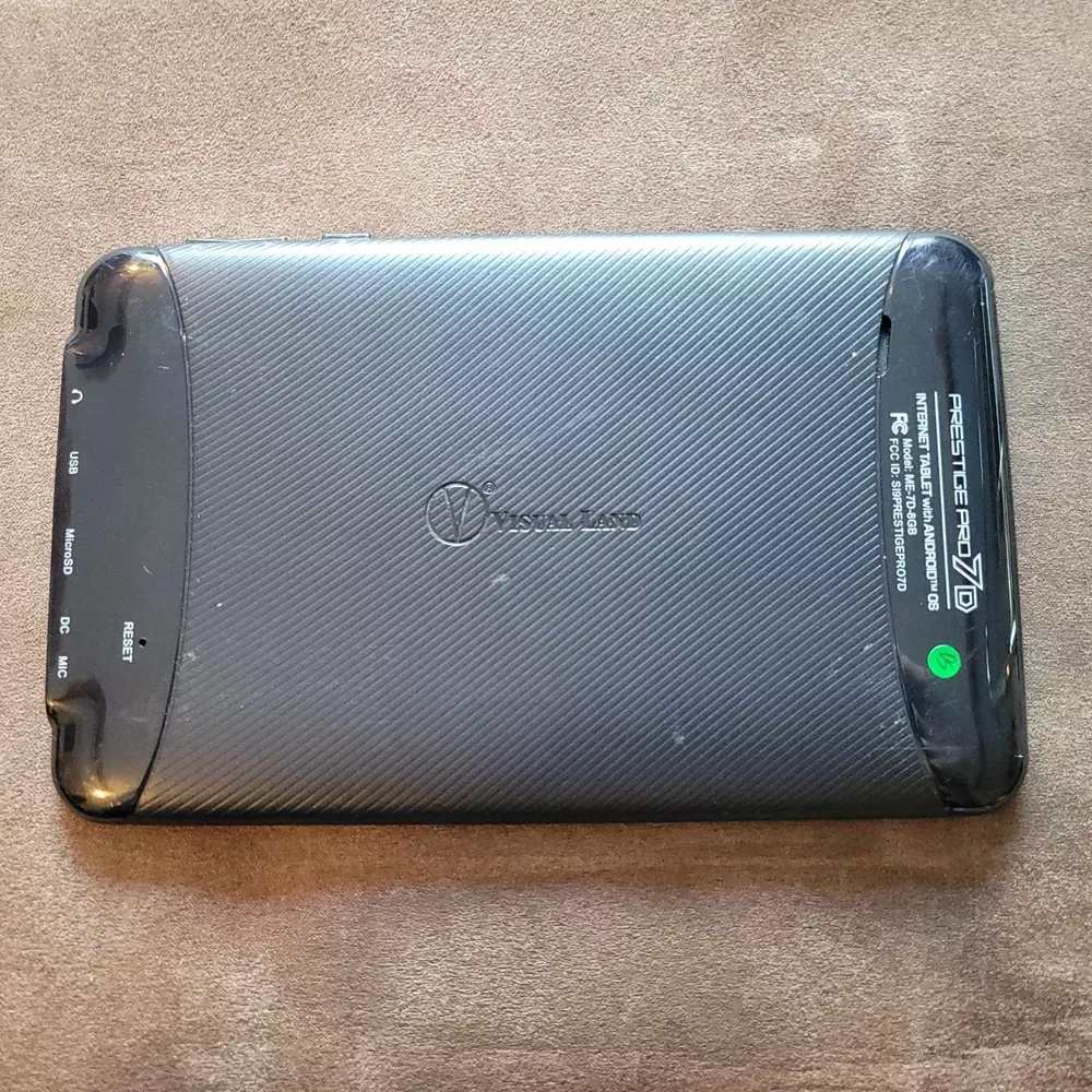 Visual Land Prestige Pro 7D 8GB 7" Black Android Tablet - Tablet is in excellent condition! Screen has one or two scratches from normal use and no cracks, dings, or dents. Tablet holds a charge, has been factory reset, and is running Android 4.1.1 Please note that this tablet is running an outdated version of the Android OS. While it still has many uses and features, there are some features that may no longer work due this including the play store. It may be able to be updated but it also may not be. Please research this model of tablet for more information before buying.