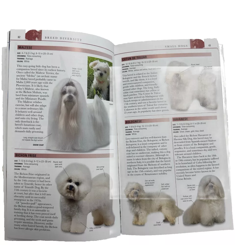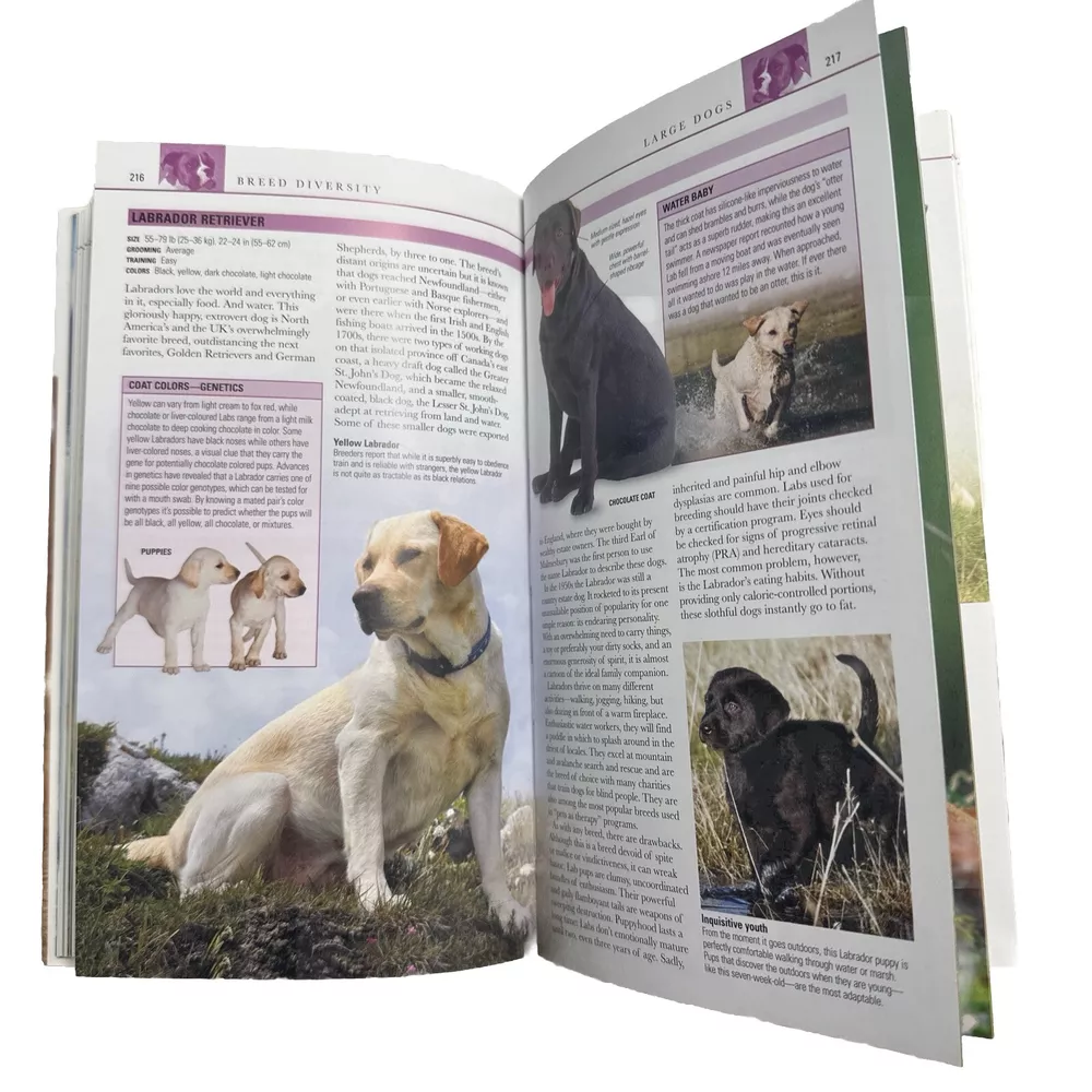 This Soft Back picture book titled "Visual Reference Guides DOGS" Breeds, Training, Health, Care, Behavior, History is a revised edition published in 2018 by Metro Books. The book measures 9 inches in length and 5 inches in width, with a height of 1 inch. In very good condition. It features illustrations of many breed types with beautiful photos and covers topics such as dogs' appearance, behavior, and grooming. The book is written in English and is perfect for dog owners who want to learn more about their furry friends. It is an excellent resource for those who are looking for a comprehensive guide to everything dog-related. The unit quantity is one. Get your hands on this illustrated masterpiece today!
