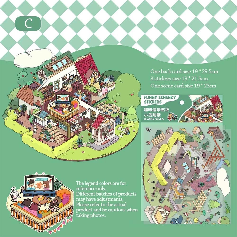 Visual Stacking Three-dimensional Sticker Cartoon Miniature Scene Sticker Gift Material: PET Sticker Size: 19x21.5 cm (7.48x47.83in) PackageListing: 19*23 cm (7.48*9.06in) Name: 3D Landscaping Stickers Brand New and High Quality! Color: as the picture Notes: -Please allow little differs due to manual measurement,The above dimensions are only for reference. -Please be reminded that due lighting effects, monitor's brightness/contrast settings etc, there could be some slight differences in the colour tone of the website's photo and the actual item. Package Include: 1 Set Stickers * Please make payment asap, then we can arrange shipment for you asap. - Thanks for your bid * We will arrange shipping for you within 24 Hours after payment cleared except the holidays. * If you have changed your address, or want us to ship to another address, please change to the new address. * We ship items to Worldwide. Thank you. - International Buyers Please Note: * Please check with your country customs office to determine what these additional costs will be prior to bidding/buying * We will carefully test every item before shipment.The quality is guaranteed! - Our working time: * Hong Kong time : Monday to Saturday 8:30 am to 5:30 pm. * if you send email to us,In our working hours will be resumed within 24 hours. * If you we are not satisfied with us ,please contact me and don't give us negative or natural feedback,We must give you a satisfactory solution. * You can contact us through email