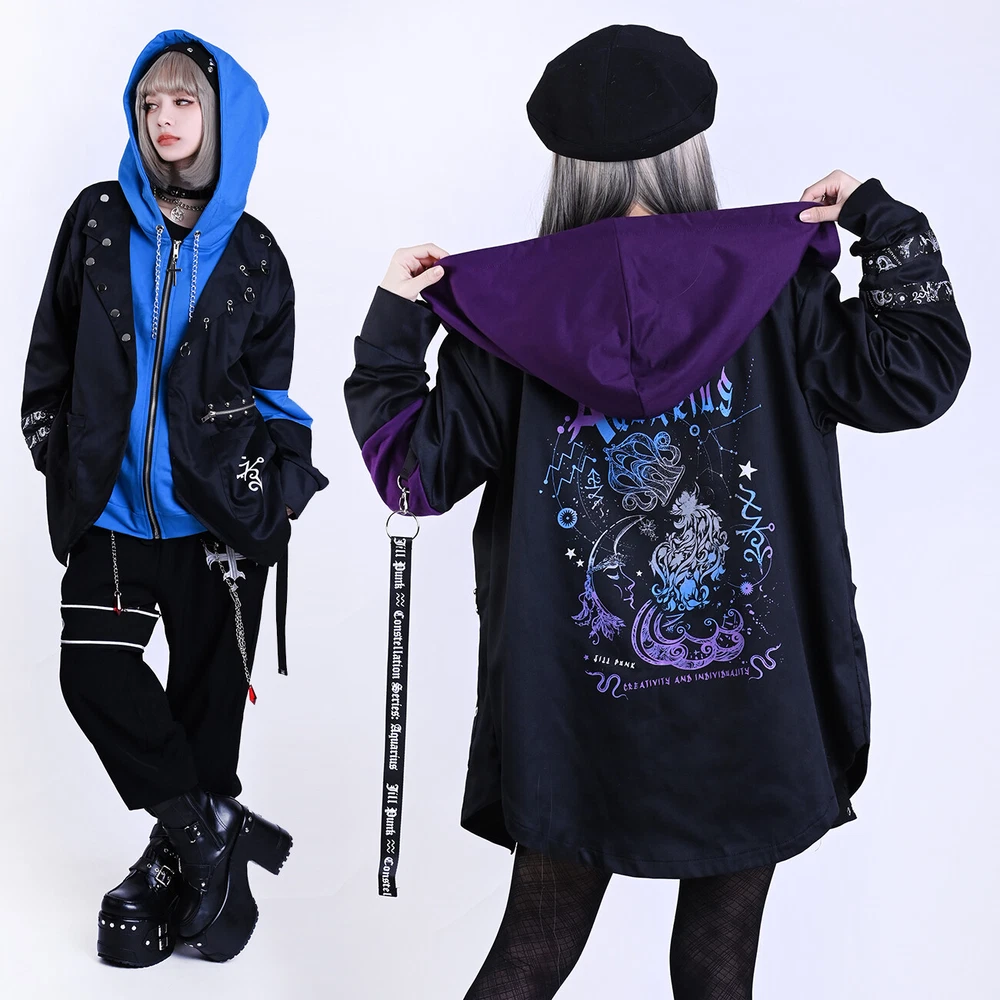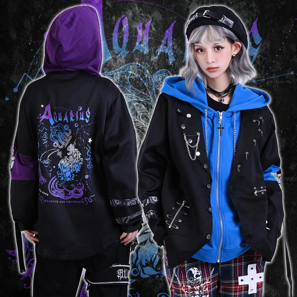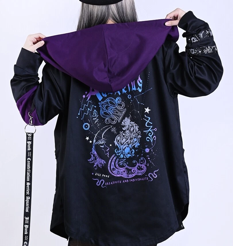 Visual tattoo punk galaxy elixir Aquarius layered look hooded jacket JJ2471 Import duties, taxes, and charges are not included in the item price or shipping cost. These charges are the buyer's responsibility. Please check with your country's customs office to determine what these additional costs will be prior to bid by ♊ gate of astrology ♊ * The water carrier collecting youth elixir in the moon river sourced from the milky-way * super cool yet practical collection in a punk style full of tattoo fashion characterstics. stylish layered look design resembling the coordination of both a hoodie and jacket on the exterior metallic adornments applied such as zipper, studs,cross charm,iron rings and silver chain . artistic main motif with original designs in a gradient colored effect -the featured black chokers ARE NOT included- available in 2 colour versions Exclusively designed by Jill,guarantee you to hardly find anywhere else@@} size(CM) Sleeve length chest shoulder length X X X X M X X 58 110 47 63-70 X L X X 58 118 51 66-73 X X O Please pay for your winning items within 5 days after auction ended PLEASE REFER TO THE SHIPPING MODULE DISPLAYED ON THE PAGE Return/Exchange Policy O All transactions all FINAL. No returns or exchange except for defective items O We will only accept DEFECTIVE items for refund or exchange within 14 days upon received O Please send defective items in Unworn and Unwashed condition and with Original Tag , otherwise we cannot exchange/refund your money back General Rules O Please E-mail us if you have any questions before bidding O Please send us an E-mail before leaving a negative feedback. We might not be able to be a perfect seller to every buyer, but we are 100 % willing to solve any problem you have O We will ship your items within 3 business days after receiving full payment. Powered by SoldEazy