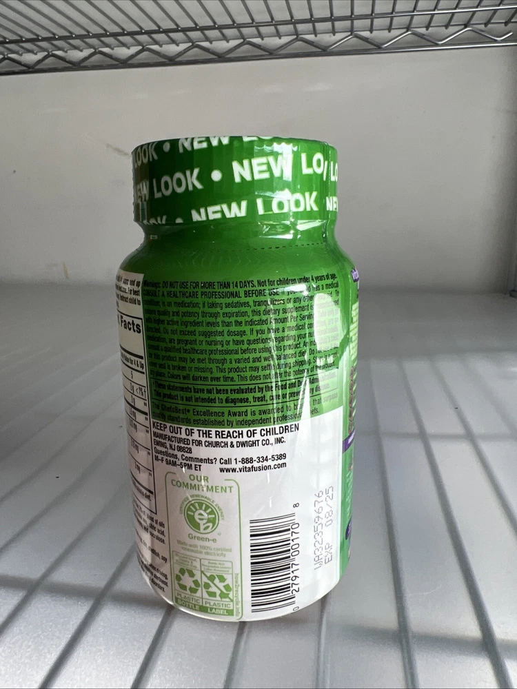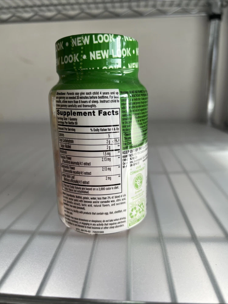 Item model number:10027917001705Brand:vitafusionMain Purpose:Sleep SupportFormulation:Gummy, Chewablegtin13:0027917001708Type of Diet:Does not applyActive Ingredients:Passionflower (Passiflora)UPC:0027917001708Flavor:PeachType:Dietary SupplementCountry/Region of Manufacture:Does not applyMPN:7C11Number of Pills:50Volume:Does not applyProduct Dimensions:2.38 x 2.38 x 4.5 inches; 5.36 ouncesItem Weight:Does not applyIngredients:Water, Coconut Oil, Gelatin, Passionflower (Passiflora), ChamomileExpiration Date:Does not applyDosage:1.5 mgDepartment:Does not applyManufacturer:Church & Dwight - Nutrition & WellnessFeatures:Dairy-Free, Gluten-Free, Sugar-Free, Animal Cruelty-Free, No High Fructose Corn Syrup, All NaturalWhen to Take:Night