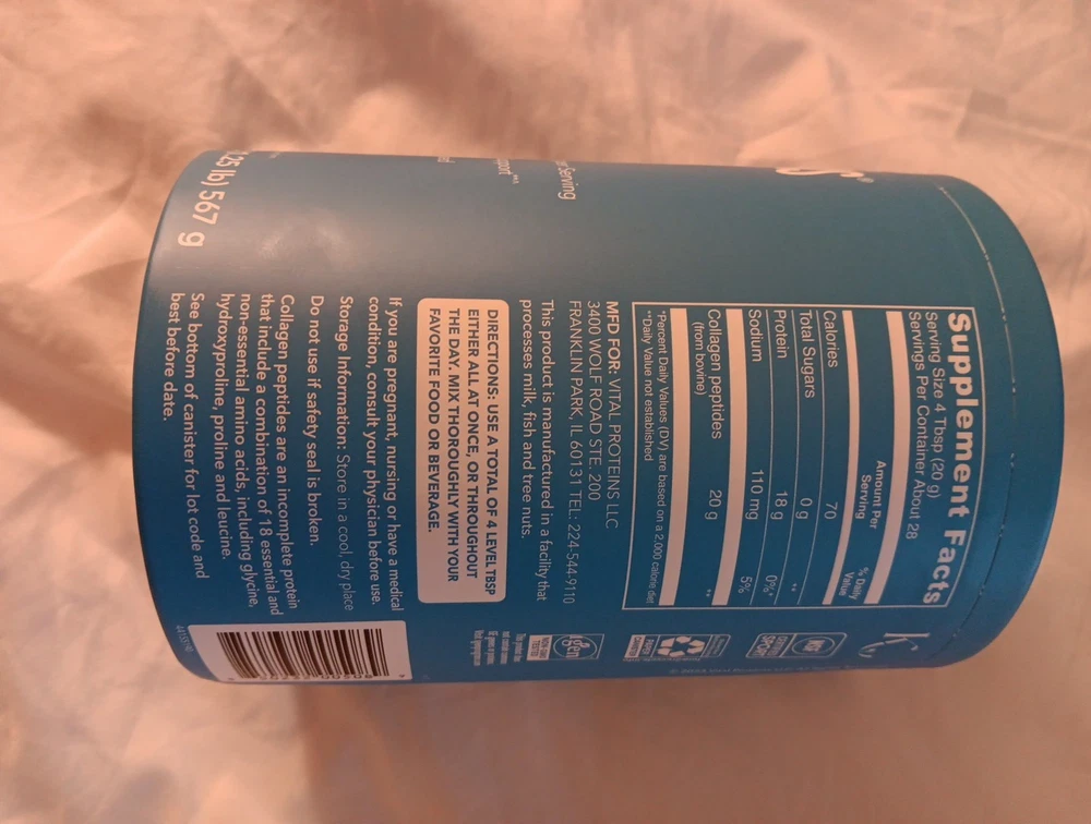 Vital Proteins Collagen Peptides Dietary Supplement Unflavored Powder 20 OZ.