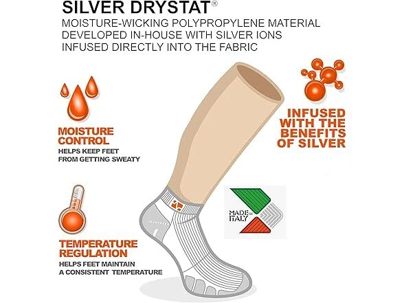 Vitalsox Low Cut Drystat Compression Running and Tennis Socks, Black, Large Condition: New Color: Black/Silver Size: LG (US Men's Shoe 9-11, Women's Shoe 10-12) Features At Vitalsox, we have been making compression socks since 1998. Using elastic layers that work perfectly together to stimulate blood flow, improving oxygen delivery to your muscles as it reduces foot and leg swelling, lactic acid production, and cramping. Designed for running, walking, standing, sitting, gym, yoga, or sleep in them. Better circulation equals faster recovery and better performance.Every style is engineered with technical, sport-specific features, and built with patented fibers developed through years of exhaustive research, increased comfort and performance, This lightly padded sock is a perfect match for the demanding athlete but also for the occasional runner seeking a perfect feeling of freedom. Bringing together spandex and sport-specific technical fibers with advanced knitting techniques including our patented interlocked diamond pattern to give you the ideal fit and support for the most challenging environments. Dry stat is our exclusive fiber that gives optimum control reducing the growth and to promote a healthier environment for your feet by keeping them dry and comfortable. DRY FEET = LESS BLISTERS. Lightly padded at the ball and on top of the foot to promote comfort and eliminate abrasion and foot stress. Compression starts mid foot to support arch and plantar fascia. Reduces Injuries - Plantar fasciitis, shin splints, calf cramps, pulled muscles, Achilles and heel cup issues, blisters, blood pooling. Perform better, recover faster, and boost your performance. ONE sock for Training, Racing, and Recovery, not the most expensive but the best compression at any price. Manufactured by Arcos the making quality socks under the brand names Vitalsox, Sox, Worksox, Caresox, Recovery Socks, Eurosocks, and Euros all in Italy never outsourced to the lowest bidder. SILVER DRYSTAT infused with Silver, Polypropylene (naturally resistant, 100% recyclable) caused when contacts sweat, by stopping from growing and wicking the socks will remain free, your feet may still smell. Specs In the Box: (1) Vitalsox Low Cut Drystat Compression Running and Tennis Socks, Black, Large