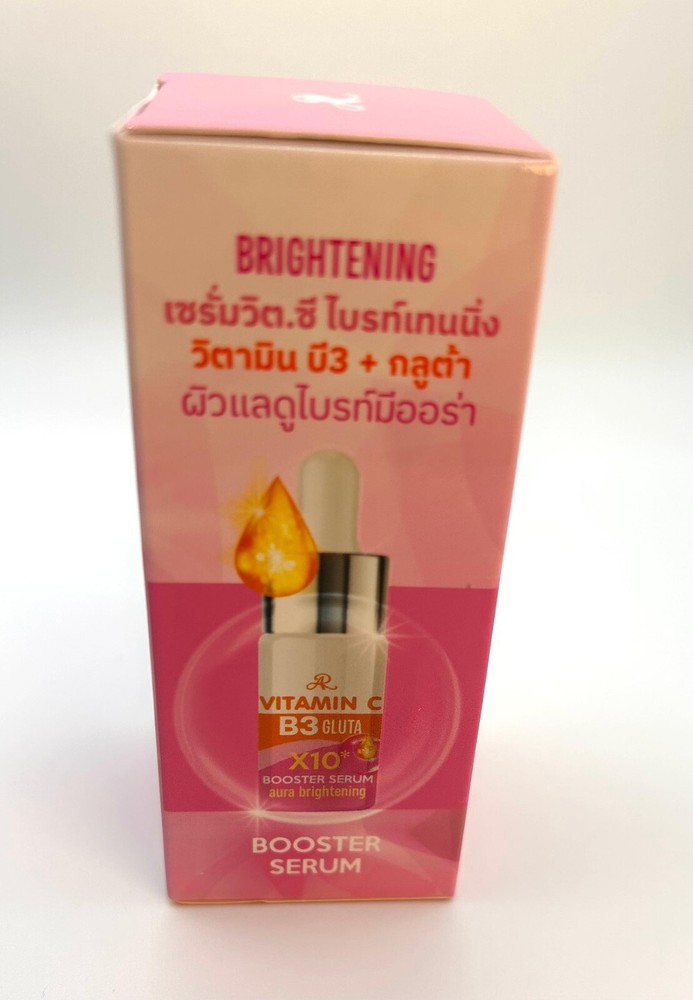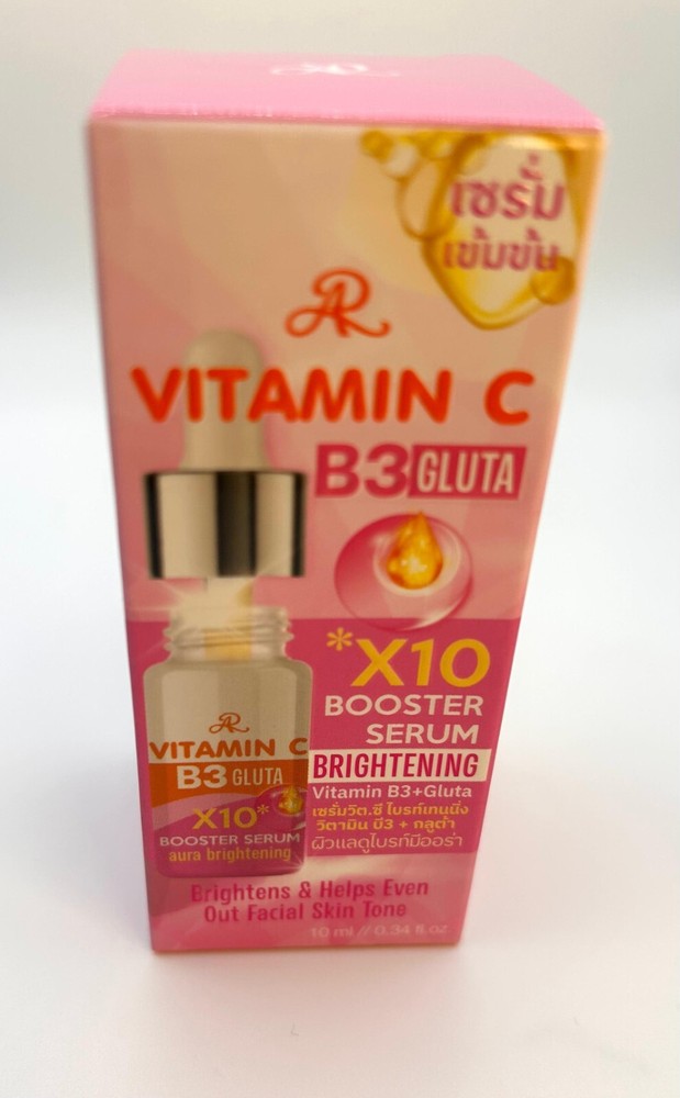 Vitamin C B3 Glutathione Brightening Booster Serum – Radiance in Every Drop! Product Overview: Transform your skincare routine with our Vitamin C B3 Glutathione Brightening Booster Serum , a powerful blend of brightening and rejuvenating ingredients. Formulated with niacinamide, snail secretion, arbutin, and vitamin C, this serum helps reduce dark spots, even out skin tone, and promote a youthful, glowing complexion. Key Ingredients & Benefits: Vitamin C: A potent antioxidant that brightens skin, reduces hyperpigmentation, and promotes collagen production. Niacinamide (Vitamin B3): Helps improve skin texture, reduce redness, and minimize pores for a smoother appearance. Glutathione: Known for its brightening properties, it helps reduce discoloration and supports a radiant, even skin tone. Snail Secretion: Deeply hydrates and repairs skin while promoting elasticity and reducing fine lines. Arbutin: Targets dark spots and pigmentation, leaving skin visibly brighter and more even. Why You’ll Love It: Lightweight, fast-absorbing formula Hydrates, brightens, and evens out skin tone Reduces the appearance of dark spots and blemishes Suitable for all skin types, including sensitive skin How to Use: Cleanse and pat skin dry. Apply 2-3 drops of serum to your face and neck. Gently massage in circular motions until absorbed. Follow with your favorite moisturizer. Use morning and night for best results. Size: [10ml or 0.34 fl oz] Elevate Your Skincare Game! The Vitamin C B3 Glutathione Brightening Booster Serum is your go-to solution for glowing, healthy-looking skin. Perfect for tackling dark spots, dullness, and uneven tone, this serum will leave your skin brighter, smoother, and more radiant.