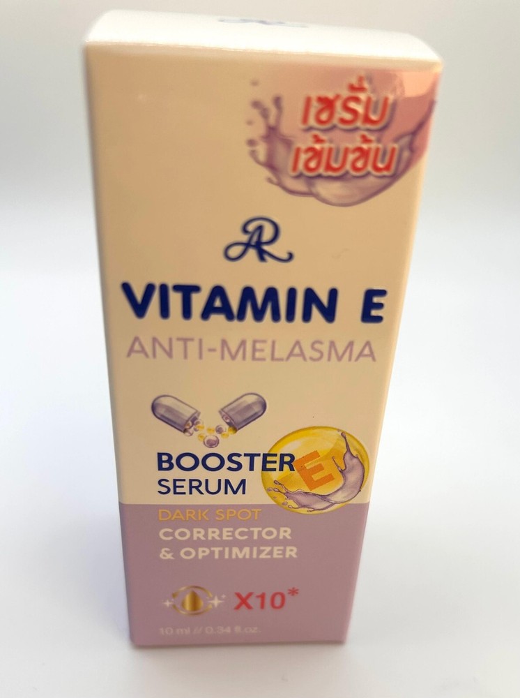 Vitamin E Anti-Melasma Dark Spot Corrector Booster Serum Achieve Brighter, Spotless Skin with Every Drop Product Overview: Transform your skincare routine with the Vitamin E Anti-Melasma Dark Spot Corrector Booster Serum , a powerful blend of skin-brightening and nourishing ingredients. This advanced formula is designed to target melasma, dark spots, and uneven skin tone while improving skin texture for a radiant, youthful glow. Key Ingredients: Vitamin E: Deeply nourishes and hydrates while protecting skin from environmental stressors. Niacinamide: Reduces redness, fades dark spots, and enhances skin’s elasticity. Arbutin: A gentle yet effective skin-brightening agent that reduces hyperpigmentation. Vitamin C: Boosts collagen production and brightens dull, tired skin. Key Features: Dark Spot Reduction: Targets melasma, sunspots, and other discolorations to reveal a more even complexion. Brightening Power: Combines powerful actives to promote a radiant, glowing appearance. Hydrating & Soothing: Keeps your skin moisturized, soft, and calm. Lightweight Formula: Absorbs quickly without leaving any greasy residue. Safe for All Skin Types: Gentle enough for sensitive skin while being effective for visible results. Benefits: Diminishes the appearance of dark spots and melasma Improves skin tone and texture Boosts hydration and protects against dryness Reduces signs of aging and promotes a healthy glow How to Use: After cleansing and toning, apply a few drops of serum to your face and neck. Gently massage into your skin in upward circular motions. Follow with your favorite moisturizer. Use twice daily for best results. Size: [10ml / 0.34 fl oz] Why Choose Vitamin E Anti-Melasma Dark Spot Corrector Booster Serum? Say goodbye to dark spots and uneven skin tone with this multitasking serum. Infused with a blend of vitamins and brightening agents, it’s the ultimate solution for achieving clear, glowing skin.