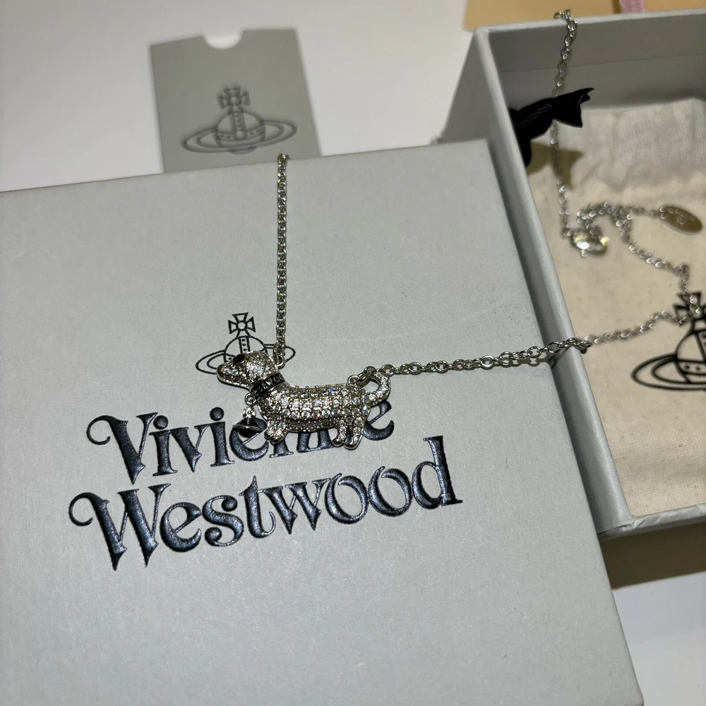 HomeVivienne Westwood Dachshund Silver Tone Pendant Necklace With Box Christmas Gift