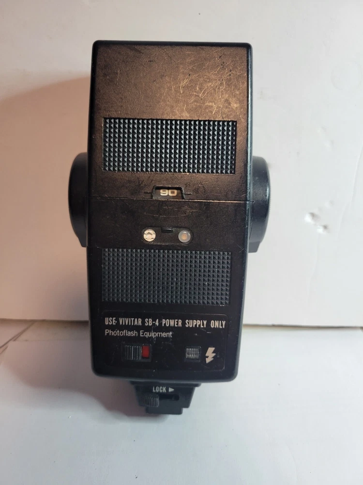 Product Information The Vivitar 283, which was first manufactured in 1972, has been described as the Volkswagen "Bug" of flash units. It was manufactured for years and remained remarkably unchanged during its entire time in production. This flash has four automatic ranges, which allows for automatic operation with a choice of four aperture settings with your camera. With a guide number of 110, it can pack quite a punch for its compact size. The head of the Vivitar 283 tilts up to 90 degrees to allow for easy bounce lighting that will eliminate harsh shadows in your photography. The thyristor design conserves the four AA batteries that provide power and allows the 283 to recycle more quickly. Pointed directly at the subject, the 283 covers lenses up to 35 mm.An AC adapter and a number of third-party battery packs are available for the 283. The batteries slide into a small magazine for quick and easy changes, and extra battery holders are readily available for photographers to pre-load additional sets for heavy or extended shooting. The 283 operates effectively on alkaline and rechargeable batteries, so you can maintain a steady power supply no matter where you're shooting.The sensor that controls the choice of four apertures can be removed and used remotely with a special extension cord, and this sensor can also be replaced with a separate variable output module, allowing you to control the manual output. This can be useful if you're using the 283 as part of a setup with remote triggers and multiple flashes. When used in auto mode, the 283 has an operating range of 3 to 43 feet, and you'll be able to adjust the aperture selection for greater control of the depth of field in your photo.The extension cord has a hot shoe mount and also a PC cord outlet on the side. The PC cord can plug directly into the flash, and the cords are available in various lengths. The use of a device like the Wein safe sync is recommended unless you test the individual flash for high voltage. This unit was designed in the days when cameras were largely mechanical, and triggering voltage wasn't an issue whereas today's digital cameras are more sensitive to a high triggering voltage. Most 283's these days are used in multi-light setups.You may want to consider upgrading the mount if you plan to use the Vivitar 283 mounted on a light stand because it is relatively easy to replace and has multiple options for a strong metal one. Some of those replacement metal hot shoes also include a built-in optical slave, which is convenient if you want to use the 283 in a multi-flash arrangement.