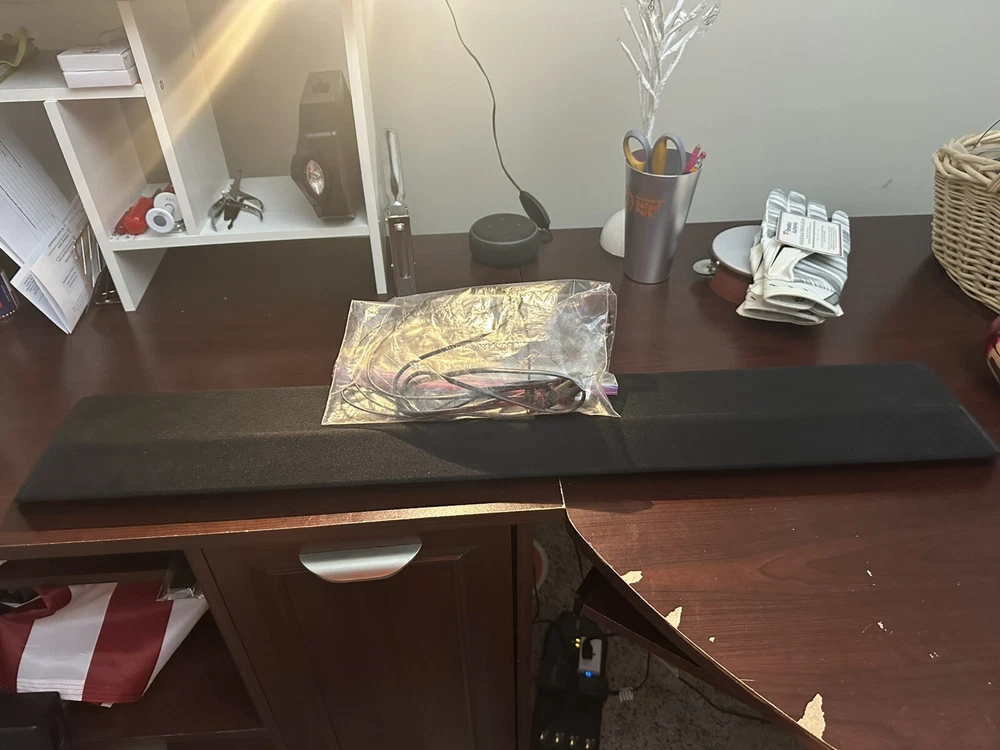 In condition, one microtear in the felt covering. Comes with all cables and remote!