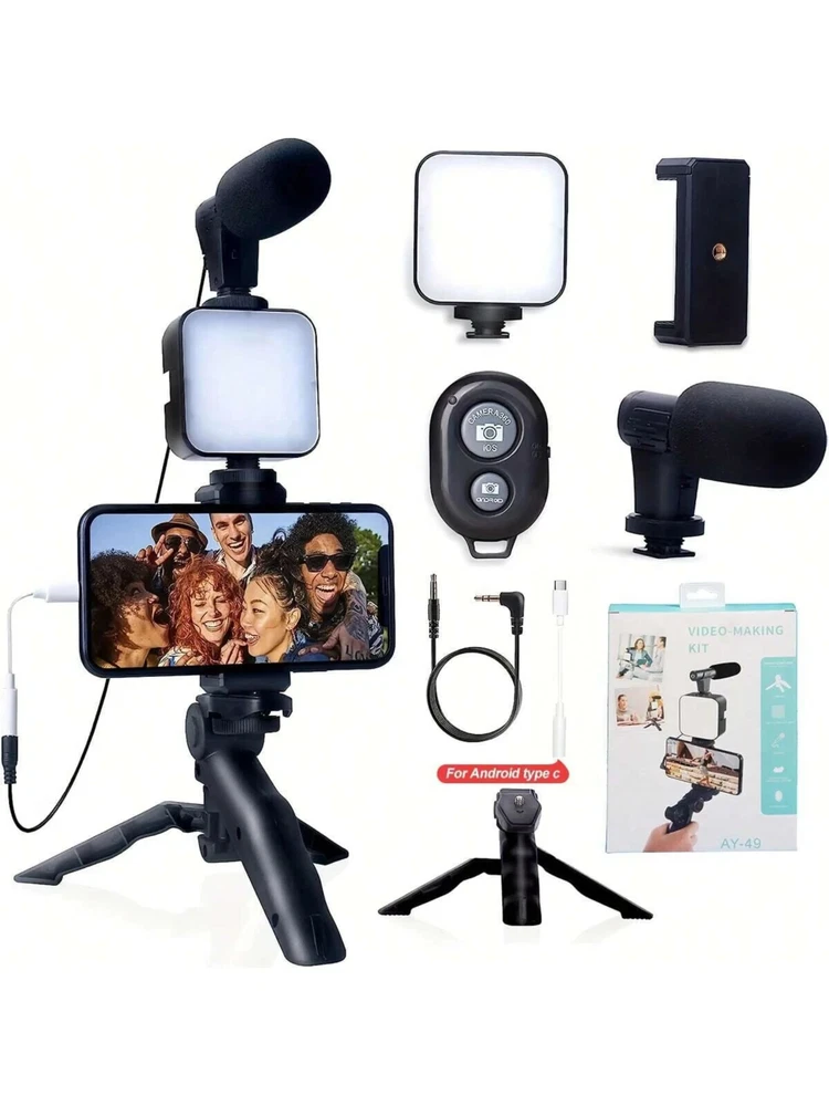 Introducing the Smartphone Vlogging Kit, your all-in-one solution for creating stunning content on the go! Whether you're a seasoned vlogger, a budding content creator, or just looking to level up your social media game, this kit has everything you need to get started. **Product Details:** - **Frequency Response:** 50Hz-16kHz - **Sensitivity Enhancement:** +20db2db - **Sensitivity:** 45db3db (OBD=1V/PA at 1kHz) - **Equivalent Noise Level:** 24dba - **Maximum Sound Pressure Level:** 130dB (THD≤1.5% at 1kHz) - **Output Impedance:** 200Ω30% (kHz) - **Net Weight:** Approximately 244g - **Product Size:** 78.5mm*66.5mm*30.5mm - **Noise Reduction:** Yes - **6500K LED Light** - **Universal Phone Clamp** - **Dual Use Tripod Handle** **Key Features:** - **Versatile Lighting:** Equipped with a 6500K LED light, adjustable from bi-color 3300k-5600k, ensuring optimal lighting for any environment. - **Universal Compatibility:** The included phone clamp fits most smartphones, ensuring compatibility with both iPhone and Android devices. - **High-Quality Audio:** Capture crystal-clear audio with the included mini microphone, perfect for live streams, video calls, and vlogging. - **Stable Tripod:** The dual-use tripod handle provides stability for your device, whether you're recording video or taking photos. - **Compact and Portable:** With its compact size and lightweight design, this vlogging kit is perfect for on-the-go use. Easily pack it in your pocket or backpack and take it anywhere. **Reasons to Buy:** - **Complete Kit:** Get everything you need for vlogging and live streaming in one convenient package. - **Easy to Use:** Simple setup and intuitive controls make it easy for beginners and pros alike. - **Versatile:** Use it in a variety of settings, from the comfort of your home to outdoor adventures. - **Durable Construction:** Made of high-quality materials, this kit is built to last, ensuring years of reliable performance. - **Professional Results:** Elevate your content with professional-grade lighting and audio, guaranteed to impress your audience. Upgrade your vlogging game with the Smartphone Vlogging Kit and start creating amazing content today! Order now and unleash your creativity!