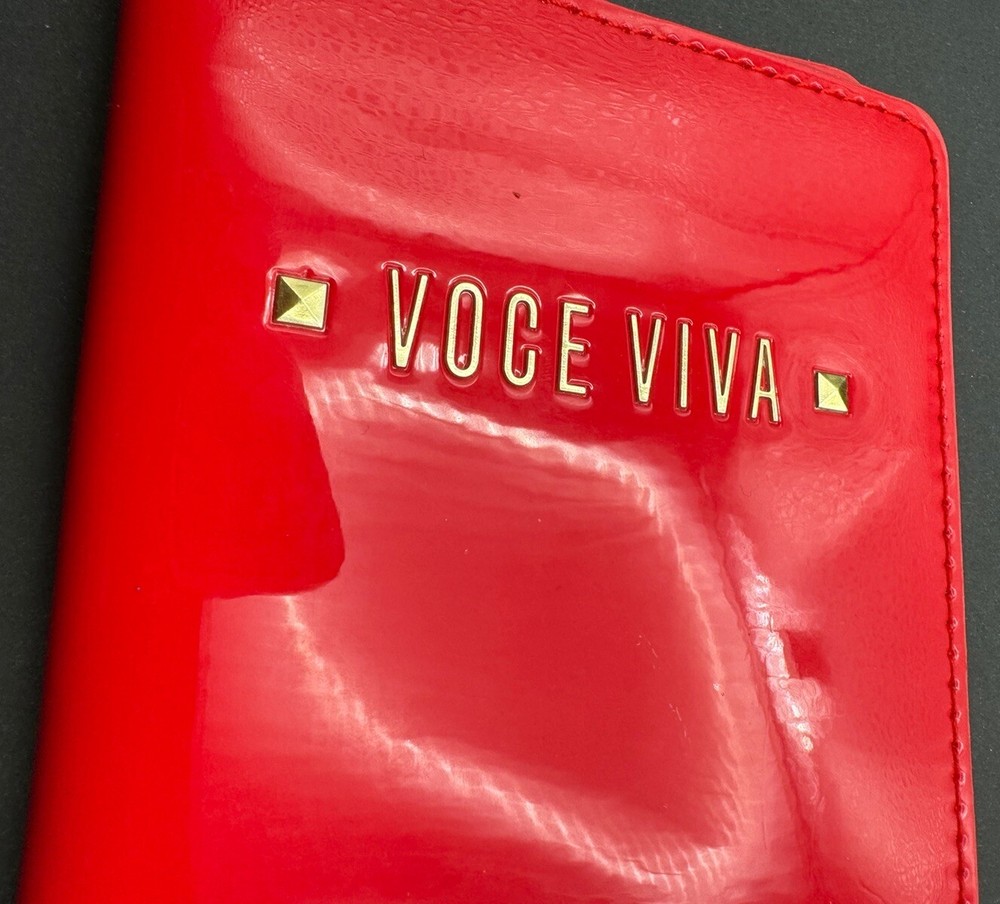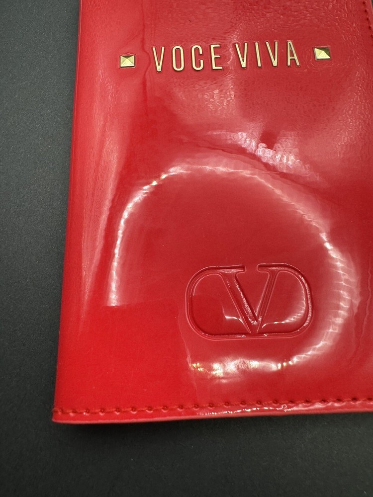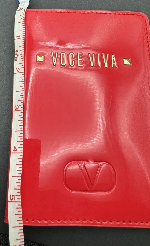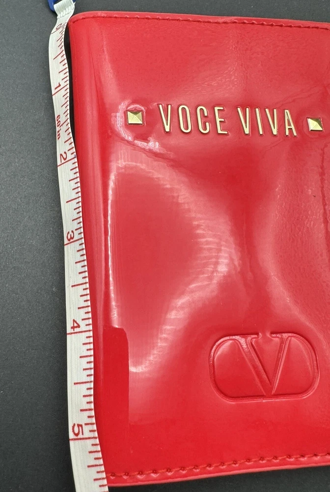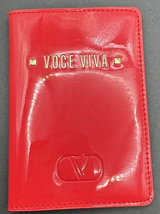 This Voce Viva Passport Cover is the perfect accessory to keep your travel documents safe and stylish. Made with a bright red patent leather look, this cover is sure to stand out in your luggage. The cover is designed for a wallet/organizer and features the brand name Valentino. This Valentino Voce Viva cover looks like patent leather and is made of polyester and was manufactured in China. It is perfect for those who love to travel and want a chic accessory to keep their passport and tickets organized. This item is a great addition to any traveler's wardrobe and is sure to make a statement. Free shipping to boot!! B-4