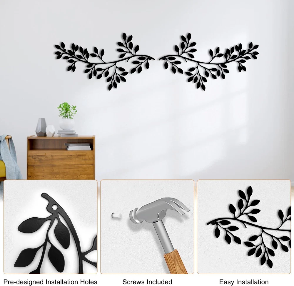 Vofstand Metal Wall Decor Living Room - 2 Pieces Leaves 2pcs Product Details Product Dimensions: 12 x 6 x 0.2 inches Item Weight: 0.317 ounces Manufacturer: Vofstand Item model number: ZQL-leaf-little Elevate Your Room with Metal Wall Decor: Enhance your room's aesthetic with 2 pieces metal olive branch leaf wall art, each measuring a generous 12x6 inches and featuring beautiful olive branch leaf designs that is pefect wall decor for living room. These metal leaves bedroom wall decorations can be displayed together as a captivating ensemble to suit your bathroom living room bathroom wall decor modern wall decor farmhouse wall decor or boho wall art style. Versatile Home Decor: These unique room wall decor makes them perfect for any room in your home, whether it's the bedroom wall art, living room wall decor, bathroom, kitchen, porch wall, or dorm. Additionally, they can create a special atmosphere in commercial spaces like hotel, cafes and pubs, leaving a lasting impression on your customers. These two decorative pieces showcase the beauty of leaves, making them an ideal choice for bedroom living room dining room wall decor. Easy Installation: We've pre-designed these black metal wall decor pieces with 2 mounting holes for your convenience, and we provide the necessary screws for secure installation. You can easily secure modern wall sculptures living room above bed wall decor to the wall using the included screws, making installation and removal a breeze. These aesthetic wall hanging decors are suitable for both indoor wall decor and outdoor wall decor use. Crafted for Safety and Durability: Our wall decorations for living room is meticulously crafted from high-quality metal materials, ensuring a smooth finish that won't easily scratch. These larger 12x6 inch home wall hanging leaf wall decorations are designed for stability, and their substantial weight of 0.6 pounds each ensures they bedroom decor stay securely in place as a great addition to your interior decor.