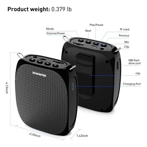 Return Policy Fast Delivery Trusted seller Voice Amplifier with Wireless Lavalier Microphone for Teachers, Portable Mini Voice amplifier, Wireless Lapel Microphone,Megaphone Speaker System for Classroom, Speech, Meeting,Yoga,Streaming Product Description A True Original Voice Amplifier that amplifies your voice without making it mechanized in sound quality; Amplifys your voice and saves your throat Voice Amplifier for Teachers is the perfect companion for educators; Enjoy the freedom of expressing yourself confidently; without the fear of your voice getting lost in the crowd Auto-connect: 2024 new wireless voice amplifier is equipped with a wireless lavalier microphone; which does not require manual pairing and is very easy to use Long battery life: With a working time of 8-12 hours; the wireless microphone can be used for about 4-6 hours; This amplifier is perfect for use during teaching; training; speeches; fitness and more Wireless lavalier microphone: By using unidirectional microphone technology, personal voice can be better captured without being disturbed by surrounding noise, which can effectively reduce noise Portable voice amplifier: This mini amplifier ultra-portable and only 172g, You can also use waistbelt to tie it around your waist or hang it on your neck Supports Music Playing: TF (Micro SD) card playing & USB flash drive playing. You can repeat single tune, loop all music and switch songs. Supporting 3.5mm AUX audio input (Mic port can be used as AUX port), Easy to use as a wired speaker Shipping Returns Payment Shipping Shipping is FREE to all addresses other than APO/PO boxes in the lower 48 states. All our stock ships from US-based warehouses. Shipped via USPS or UPS (depending on location and package weight) Unless stated otherwise, all orders will ship within 24-72 hours of your payment being processed. Check our feedback to see the great reviews of FAST shipping we offer. Returns Seller does not accept returns Payment We currently accept payment via eBay managed payments only. Once payment is cleared, we will dispatch your shipment within 1-3 business days. Please refer to the "Shipping" tab for more information regarding shipping speed to your destination.