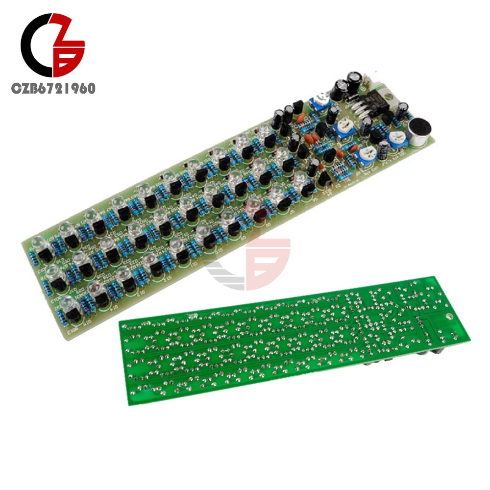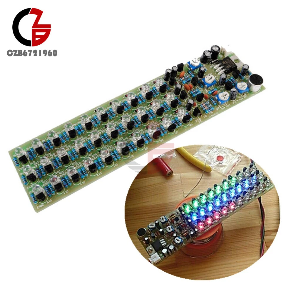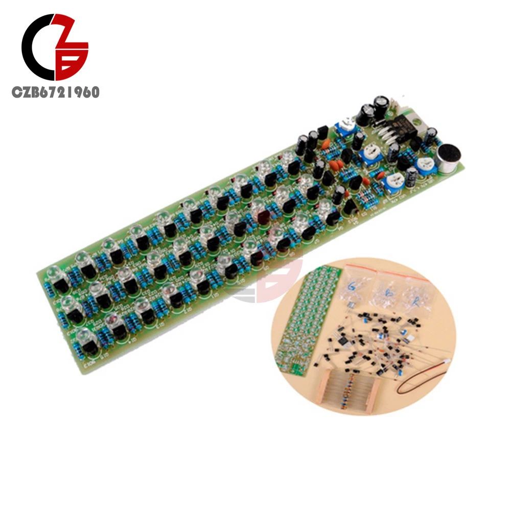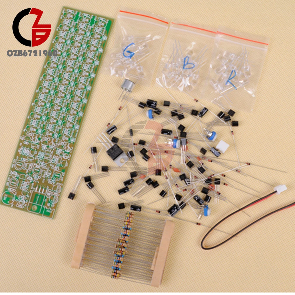 Home Electronic Component Chips Sensor Arduino Module Raspberry Pi Voice Control Level Indicating LED Electronic Production Red/Blue/Green DIY Kit Popular Popular Product Introduction Product description: Three sections of 10-point voice level indicator kit (blue, green, red 5mm Highlight LED) Kits Model: SAL-30 Operating voltage :9-15V PCB Size: 160mm * Width 42mm Features: Power Voltage:9V--15V; PCB Dimensions:160mm*42mm Principle of Circuits: The circuit is mainly composed by Power Circuit, Audio Amplifier Circuit, Frequency Dividing Circuit and LED Driver Circuit. 1. Power Circuit: The power output voltage is 9V--15V. D1 can avoid the demage of three terminal regulator when the power polarity is connected in a wrong way. After the C4's filtering , L7806 three terminal regulator will provide the whole circuit with a stable voltage of 6V. 2. Audio Amplifier Circuit: Electret microphone MK1 transfers the obtained sound to electric signal which will be amplifed twice by Q1 and Q2. At this time, UR1 can adjust the size of Q2 signal in order to adjust the sensitivity of the whole circuit. 3.Frequency Dividing Circuit:Three frequency dividing circuits is added to indicate the electrical level on the different frequency, as it's featured with three sections of LED indicator in a seperate way. VR2、VR3 and VR4 are used for adjusting the sensitivity of LED indicator on the different frequency. The sound signal from three different frequency can be distinguished according to the different capability of C6、C10 and C11. Q4、Q5 and Q18 collectors can obtain three different frequency and the voltages after dividing and amplifying by diode and transistor. The level of voltage depends on the size of the sound from outside. 4.LED Driver Circuit:There are 9 pieces of 1N4148 diode in each frequency. If the sound is louder, the higher voltage will be obtained by Q4、Q5 and Q18 connector and more 1N4148 start work. Then more LEDs can light. Components List Circuit Diagram Buyer show: Package Included: 1PCS*Voice Control Level Indicating LED Red/Blue/Green Electronic Production DIY Kit Payment Shipping Refund Payment We accept PayPal only. But we only Accept your Ebay Address ,Please Make sure it's 100% right. Payment must be received in 5 business days of auction closing. Please leave note for your special request (e.g. Colors or Size) in PayPal when you pay the order. Any special request cannot be accepted after 24 hours of payment, because most of orders will be processed instantly and same day dispatched. Shipping We maintain high standards of excellence and strive for 100% customer satisfaction! Feedback is very important to us. We request that you contact us immediately BEFORE you give us neutral or negative feedback, so that we can satisfactorily address your concerns. Refund All package need to wait 30 days (US only n eed 7-10 days) , Please take care it.Less than 30 days,we can't take a refund . If the item is defect when you receive it or you are not satisfied with it, please return it within 14 days for a replacement or money back. But the items must be back in factory condition. Please contact us and double check the return address before you return it. If is item is defective in 12 months, you can return it to us. We will send you a new replacement after receiving the defective item.