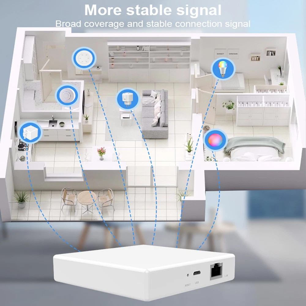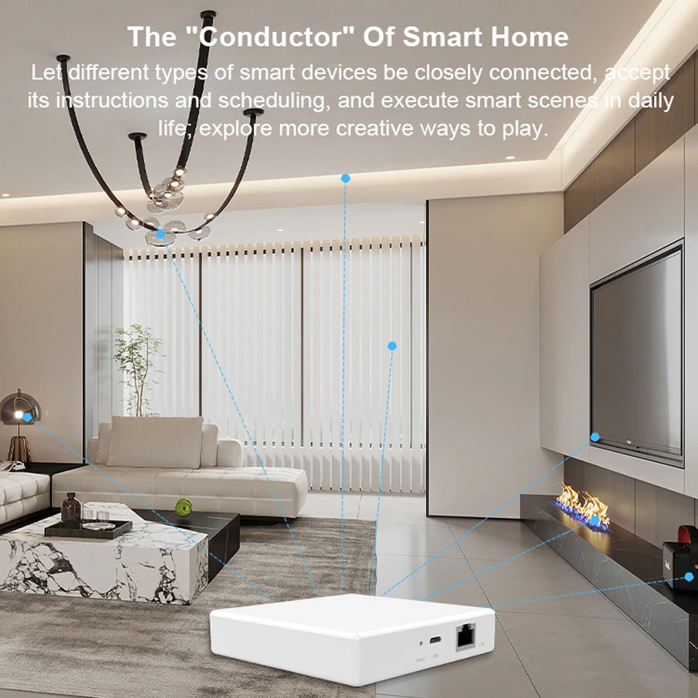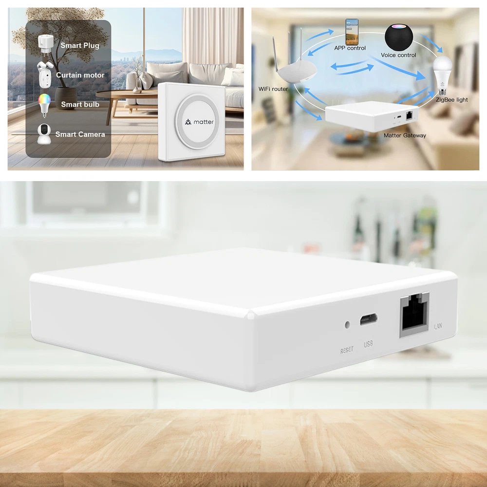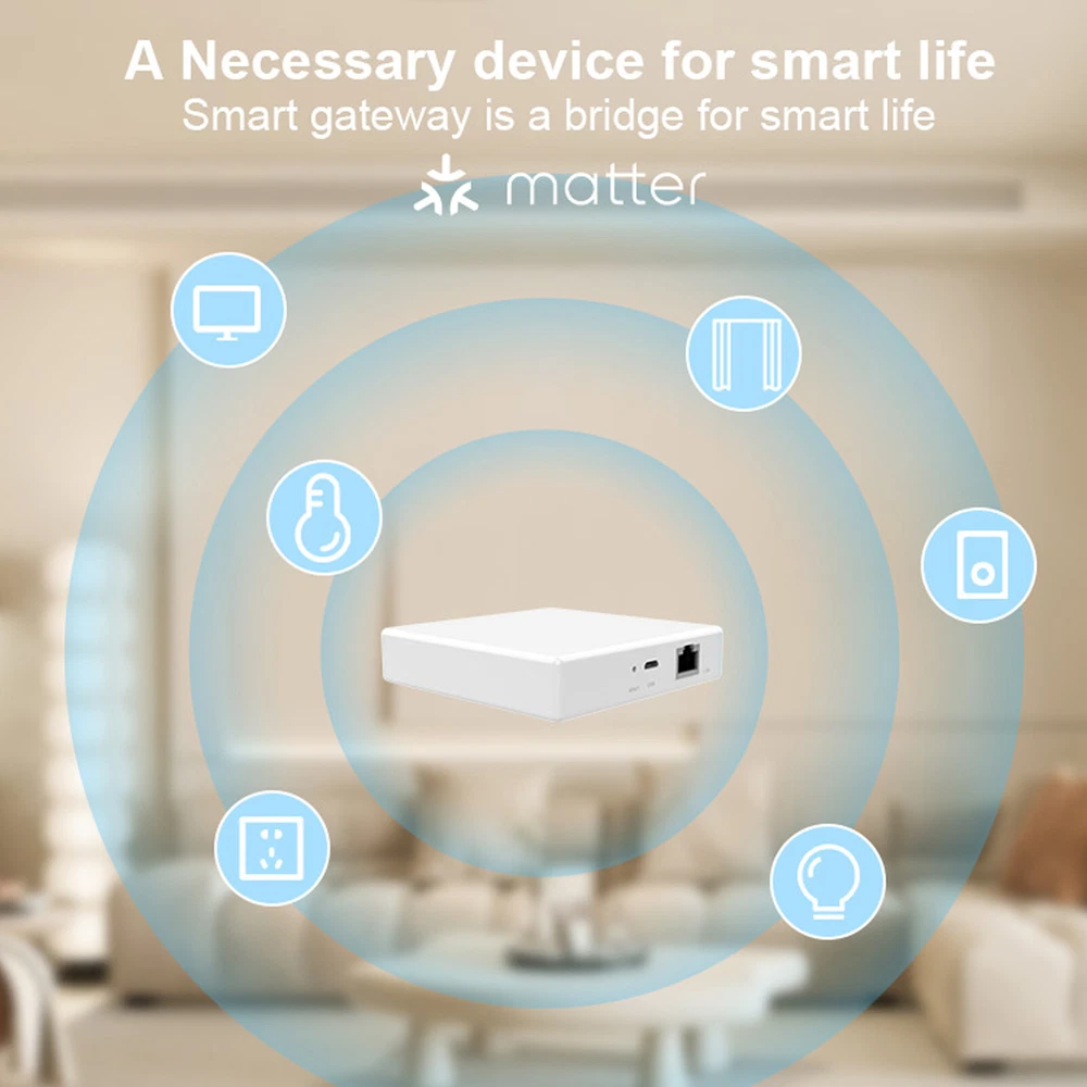 Note: Matter Thread Zigbee Hub only accepts control Tuya standard zigbee devices and Thread devices, not all zigbee devices can work with our hub, it is better to get zemismart verified devices. Feature: - Support Multi Protocol: Matter hub support Tuya Zigbee standard and Thread devices. To make more devices work on Matter-certified system. (Matter border router is required for Matter system.) - Supports multi-platform usage: It allows Tuya Zigbee standard devices to function on third-party platform,such as Google Home. You can share the Tuya app's QR code with these platforms , enabling control across multiple platforms. - APP Remote Control: Control your Tuya Zigbee devices anytime , anywhere with the Tuya App/Smart Life App/Google Home App. - Voice Control:After Thread zigbee devices connect to the gateway, support voice control via Siri and Google Home. - High quality craftsmanship: The exterior is made of flame retardant plastic to ensuring long-term reliable operation of the gateway. The internal structure is clean and tidy , and exquisite throughout every detail. Product Spectfications: Product Name: Smart Wred Gateway Pro Input Power : 6Vm1A(m:Direct Curent) Working Temperature:·10'℃~+45℃ Working Humidily: 10% to 90% RH (nar-condensing) Standby Power: ≤0.5W Internet Port: 10/100Mbps Ethernet Product Size: 90x 90x 23mm Net Weight: About 74.5g Wireless Protocol: ZigBee&Thread Packing list: Smart wired gateway Pro*1 Power cord *1 Network cable *1 Product instruction *1