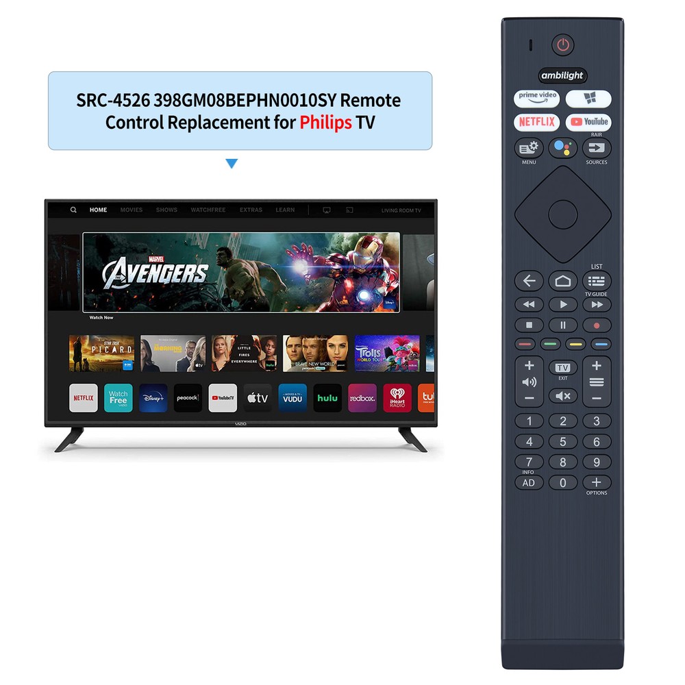 New SRC-4526 Replacement Voice Remote Control For Philips TV Please ensure that this is the right remote control before ordering.Thank you~ Compatible Models: SRC-4526 398GM08BEPHN0010SY Package Content: 1 x Remote Control ( Battery Not included). We welcome Bulk buyers (order 5 or more each time), Please contact us for Bulk Buy discounted price. Any question, Please do not hesitate to contact us before leaving Feedback, We will help you resolve it, Thank you :) Thank you for your interest.Nice shopping!