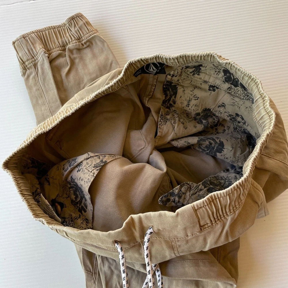 Welcome to our Ebay Store~! Item: Volcom Canvas Chino Jogger Mens Size M Beige Casual Style Fashion Summer Fit Condition: Pre-Owned Very Good Condition Measurements LAYING FLAT: Waist: 40 cm Inseam: 71 cm Length: 99 cm == Shipping: Shipped Fast and Tracked with Australia Post Standard Parcel 2-3 Day Handling Time Maximum