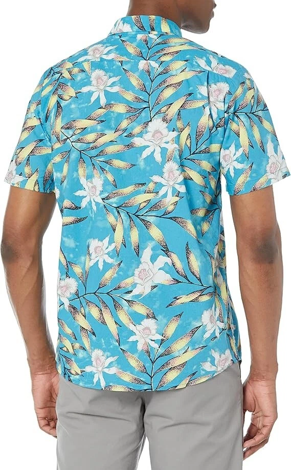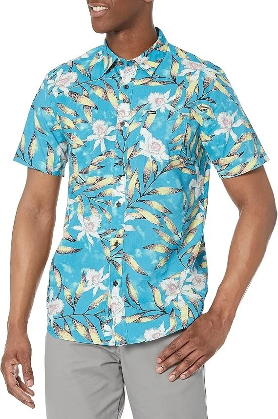 Volcom Men's Tropical Hideout Short Sleeve Button Down Shirt Size: Large Color: Maliblue Content: 57% Cotton / 43% Viscose