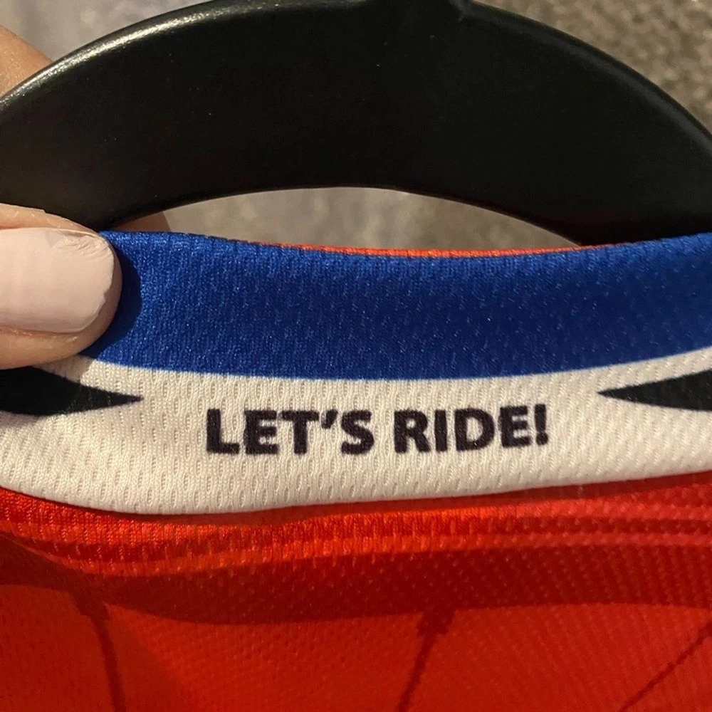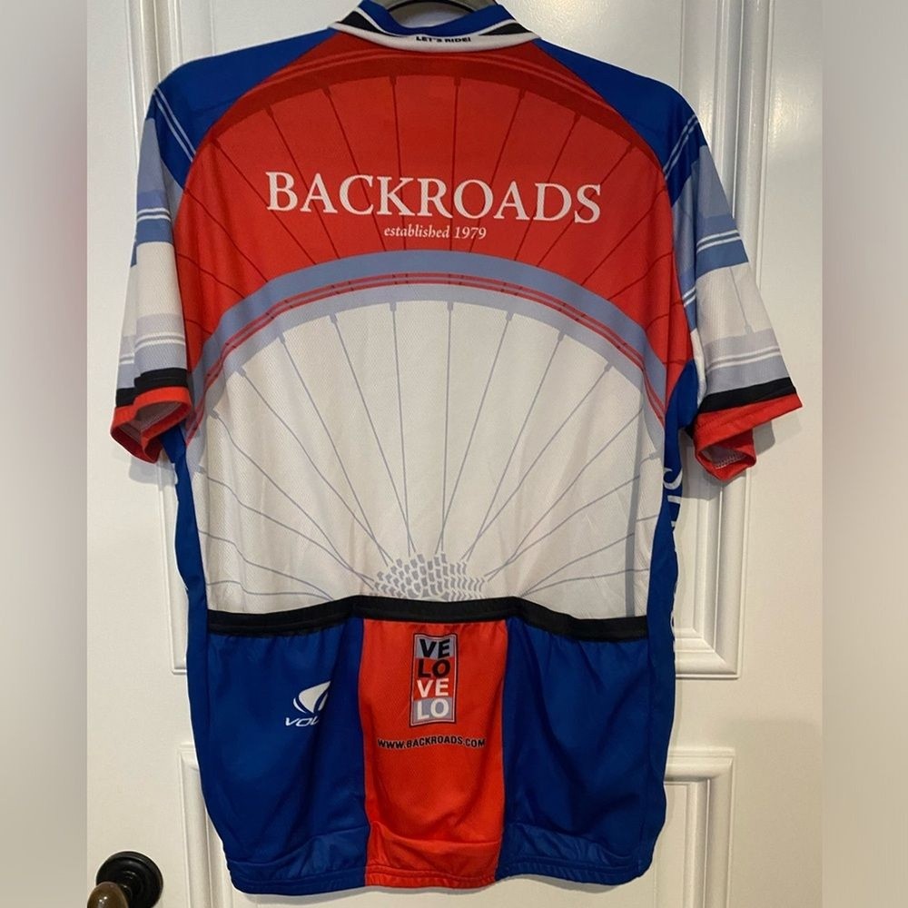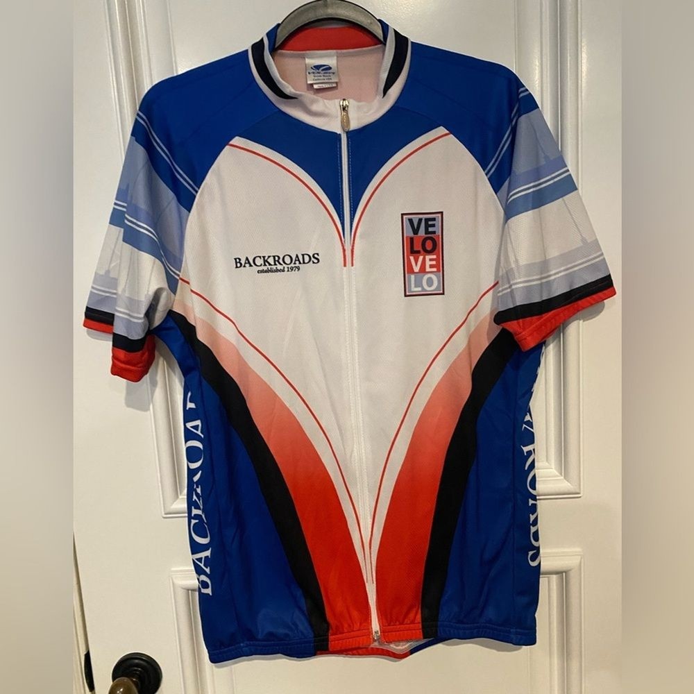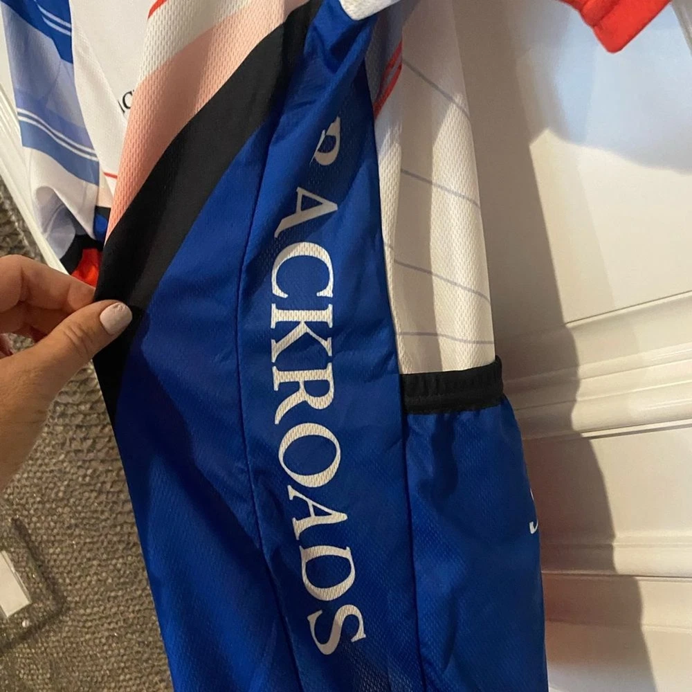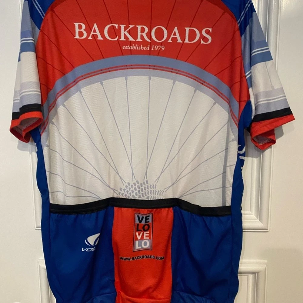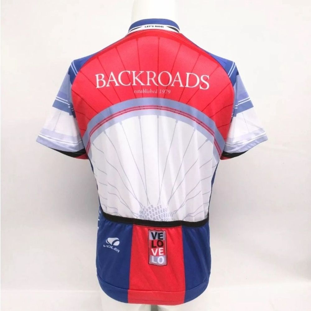 This Voler Backroads Love racing jersey is a must-have for any cycling enthusiast. Featuring a unique design in blue, white, and red, this jersey is perfect for men who love to show off their passion for cycling. Made from high-quality polyester material, the jersey is comfortable to wear and perfect for any cycling activity. The jersey comes in size and has short sleeves, making it suitable for regular-sized men. The Backroads Love model is perfect for those who love the theme of love and cycling. This jersey is ideal for all cycling activities and is sure to make you stand out from the crowd. Excellent, like-new condition.