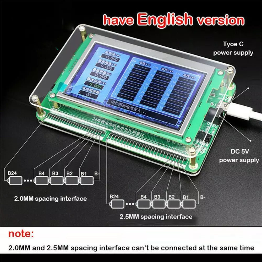 SAFE & SECURE SHOPPING 100% SATISFACTION GUARANTEED FAST SHIPPING 1S-24S Li-ion Lifepo4 Battery Pack Single Cell Series String Voltage Tester ASUS Product Description Features: 1. Support negative pressure display. 2. Single series range 0.4V-9V. 3. Measurement accuracy 0.05%±3MV. 4. Support for mixed insertion (without starting with B-). 5. Automatically identify the number of battery strings. 6. Display the highest voltage, the lowest voltage, and the maximum differential pressure between strings. 7. TypeC port power supply. 8. Color LCD display with 1 to 24 string battery pack measurement. Product parameters Weight : 85g Size : 140.7*87.6mm Be applicable: 2 strings - 24 strings Direction for use Connect the TypeC power port to the power supply, and then select the detection port according to its own interface, and then you can check whether the voltage difference is normal. Matters needing attention Please follow the instructions to insert the meter, the connector and cable sequence can not be wrong. Package includes: 1*1S ~ 24S lithium battery pack single cell voltage tester 1*DC power cable OR 1*1S ~ 24S lithium battery pack single cell voltage tester 1*DC power cable 1*Expansion Board Payment Shipping Returns Contact US Payment Payment must be completed within 5 days. If you have any problems about payment, please contact us via ebay message. Shipping We only ship to confirmed ebay Order addresses. Please comfirm that your Order address is in line with your shipping address. Please kindly note that the combined shipping is not provided because the shipping fee is calculated by weight. Also, the each additional item means exactly the the same color and size. It takes about 7-15 working days to US; about 10-30 working days to other countries. Transit time may be a little delayed because of the bad weather and customs inspection. If you do not receive your item within 30 working days since payment finished, please contact us immediately for further assistance. Returns Items can be returned for exchange or refund within 30 days from the date you receive your merchandise. We are not responsible for any purchase after this 30-day period. Return shipping is the responsibility of buyer unless the return is a result of our mistake (i.e., your receive the wrong item). We will pay for shipping replacement back to you if an exchange is requested. Contact US Customer satisfaction is very important to us and our feedback rating reflects this satisfaction. If you have any questions, Our customer service staffs welcome feel free to contact us by EBAY message box. We strive to answer all questions and resolve any problems as quickly as possible. Copyright © 2022 Tongtool On Dec 26, 2024 at 03:54:08 PST, seller added the following information: