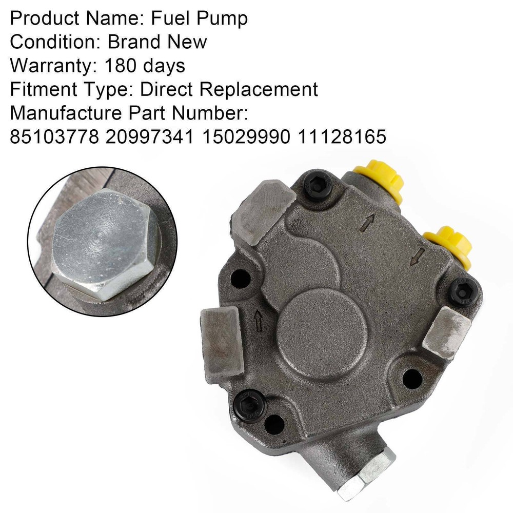 You may also like Fuel Tank Lock Ring Spectra 71722YH Fit Jeep Cherokee 1984-1996 12.85 USD Free shipping High Pressure Fuel Pump PE22-20-3F0 Fit Mazda 3 2014-2018 CX-3 2016-2018 2.0L 101.85 USD Free shipping Fuel Filter Primer Pump 10mm Fit Nissan Navara D40 2.5L YD25 Diesel 2006-on TGU4 33.11 USD 34.85 USD Free shipping 5% off Gas Tank Fuel Sending Unit 3/8 Feed AM-39086513 fit Chevy Corvette 1978-1981 H1 96.85 USD Free shipping Fuel Pump Seal NI0515878 Fit Nissan Altima 2004-2018 Fit Quest 2004-2009 H10 12.85 USD Free shipping 1/2" Hand Primer Bulb Outboard Car Marine Boat Gas Fuel Line Pump All Fuels A1! 13.85 USD Free shipping Gas Tank Sending Unit w/ F.I. w/ the Fuel Pump Fit Jeep Comanche MJ 1987-1990 US 74.85 USD Free shipping Electric Fuel Pump E8289 Fit Mercedes Benz G500 G55 AMG E320 CLK430 S600 H1 55.85 USD Free shipping Coolant Overflow Bottle Tank Fit Mazda BT-50 2011-2015 Fit Ford Ranger PX US 59.85 USD Free shipping Oil Filter Housing 7800066 Fit BMW F20 F21 2011-2019 F22 F87 2012-2020 E90 US 129.85 USD Free shipping High Pressure Fuel Pump 13517592429 Fit Mini 1.6T Cooper S & JCW N18 Engine 558.85 USD Free shipping Fuel Pressure Regulator Mount Fit LS Cylinder Head Mounting Billet Fit Chevy S2 27.85 USD Free shipping High Pressure Fuel Pump CM5E-9D376-DA Fit Ford Focus III 2.0 TDCi 2010-2020 H10 98.85 USD Free shipping 5PCS Fuel Pump Seal NI0515878 For Nissan Altima 2004-2018 For Quest 2004-2009 US 49.85 USD Free shipping Fuel Pump Module Assembly 17045-SWE-H00 Fit Honda CRV RE2 RE4 2007-2011 H1 97.85 USD Free shipping 525lph F90000285 Hellcat Fuel Pump & Install Kit E85 Compatible Fit Walbro TI FX 55.85 USD Free shipping NEW-00004 Fuel Pump 20997341 Fits Volvo VN VNL VHD Series D11 D13 D16 Engine 85103778 T2 Specifications: Product Name: Fuel Pump Condition: Brand New Warranty: 180 days Fitment Type: Direct Replacement Manufacture Part Number: 85103778 20997341 15029990 11128165 Fitment: For Volvo Truck D11 Engine For Volvo Truck D13 Engine Package included: 1 * Fuel Pump (Same as pictures show!!!) Note: Due to the difference between different monitors, the pictures may not reflect the actual color of the item. ⭐ COMPATIBILITY CHECKLIST ✔ Check description and vehicle compatibility chart ✔ Compare OEM numbers ✔ Review connector photos ✅ Free verification: Message us first 1: Full VIN (17-digit) 2:OEM # from your original part 3:Old part photos 4:Vehicle Year/Make/Model/Engine Size Shipping Return Warranty Feedback ✔ Order Processing: Ships within 3 business day (Mon-Fri, excludes holidays). ✔ Delivery Time: 3-7 business days (continental U.S.). ✔ Tracking Info: Provided automatically via eBay. ✔ All orders will be shipped through USPS, UPS and Fed E x depends on the weight of the items. ✔ Shipping notification will be emailed to you once package has been shipped ✅Fast & Reliable Shipping – Your order is our priority! ✅We package all items with care to ensure safe arrival! ✅ International Shipping: Available to 50+ countries (calculated at checkout). Customs/duties may apply for international orders. We Want You to Love Your Purchase! 💙 Our 60-day return policy protects you: ⭐ STEP 1: Message Us First - we often solve issues without returns! ⭐ STEP 2: If the return is due to change of mind, select "Didn't like item" or "Ordered by mistake" . For tem not as described, provide details and photos to help us assist you promptly. Why Contacting Us First Helps You: • Faster solutions (often within 48 hours !) • Possible instant refund or replacement options • Personalized return instructions for your case For Your Protection: • We carefully inspect all returns • Please use tracking when shipping back • "Not as described" returns require photos/video for fastest resolution Help us serve you better by contacting us first! 😊 ⭐ HASSLE-FREE WARRANTY • 90-365 Day Coverage (varies by product - see listing details) ❌ Exclusions: 🔸Physical damage (drops/accidents) 🔸Installation errors (YouTube tutorial links provided) 🔸Modified/tuned vehicles ⚠️ Claim Process: 🔹Message us with video proof + order # 🔹Get prepaid return label (if approved) 🔹Choose: Replacement / Refund 📢 Our Feedback Promise ⭐ Your Satisfaction Matters Most! We work hard to earn your 5-star experience. Before leaving feedback, please: 1️⃣ Contact us first if there’s any issue – we’ll make it right! 2️⃣ Verify your item meets expectations (check sizing/compatibility if applicable) 3️⃣ Allow reasonable time for shipping/delivery 🛠 Problem Resolution Guarantee: • Message us within 3 days of delivery for: ✔Refunds/Replacements ✔Missing parts inquiries ✔Product guidance 🚫 Please Avoid: • Feedback related to shipping carriers (we can’t control delays) • Comments about pricing (set by market value) • Claims without prior contact attempts 📦 General Reminders: • Check your spam folder for tracking emails • Inspect packages before discarding outer boxes • Save receipts for warranty purposes About Us About Item All items sold by us are being described to the best of our abilities, as accurate as possible, and with utmost conscientiousness on our part. However, to avoid any potential oversights, I respectfully request your assistance in helping us to make this a mutually satisfactory transaction by THOROUGHLY reviewing item description and photos, and asking all questions PRIOR TO BIDDING. Customer Satisfactory 1.We back our commitment with superb service, 100% full money back and a customer satisfaction guarantee. 2.I am here and ready to assist you with any questions or concerns you might have before or after the purchase. 3.My goal is to make sure you are a happy customer and pleasant shopping with us. Feedback If you are satisfied with the purchase and our total service, your comment is very important in our business success. Please take a minute to leave us a positive feedback with an overall Detai