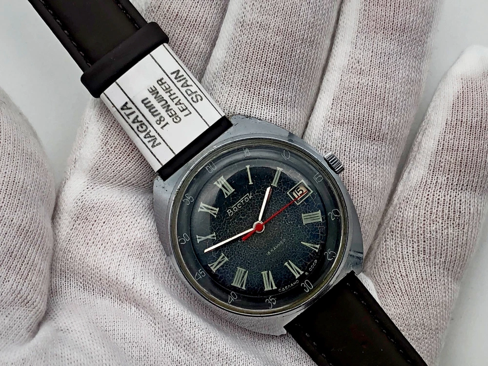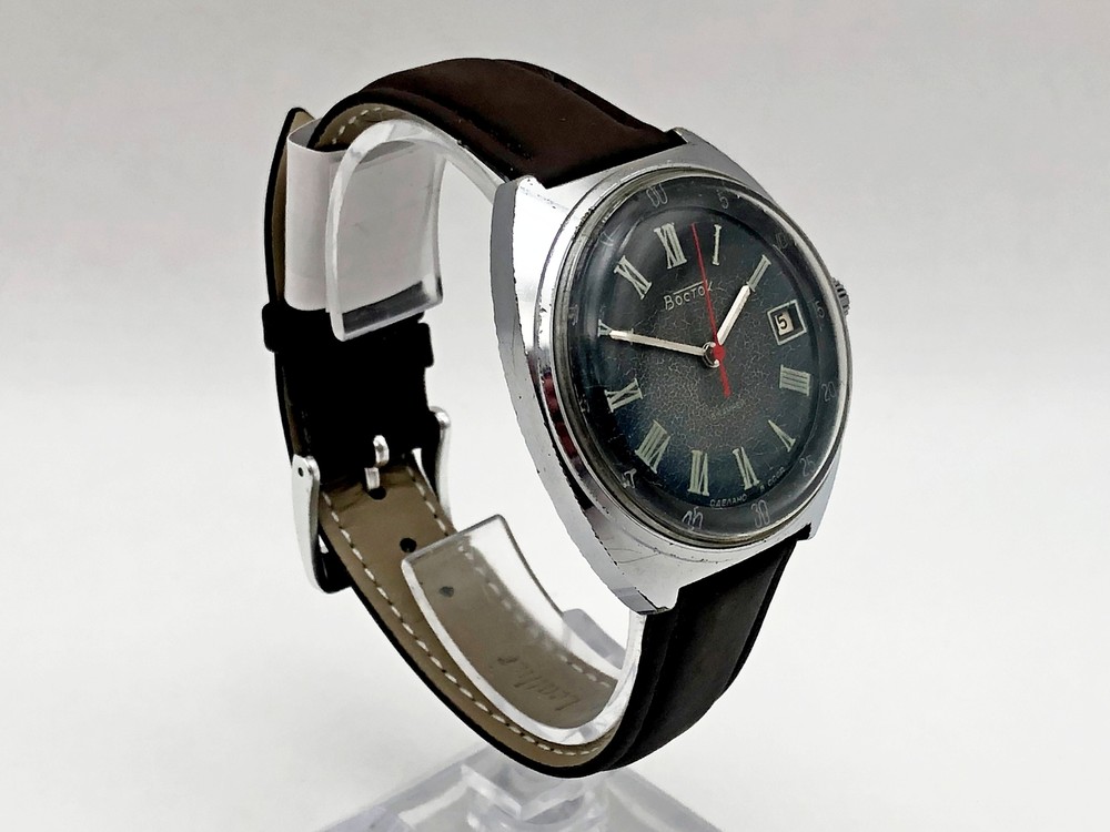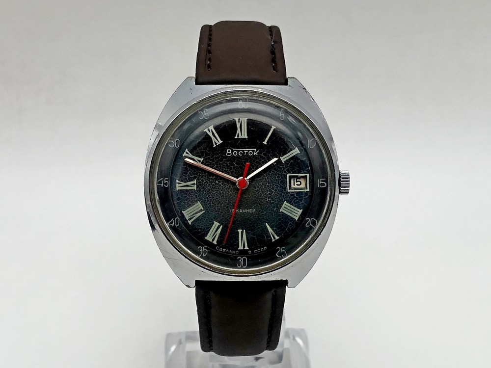 WOSTOK 2214 SU Vintage Mechanical Wristwatch 18 Jewels Vostok USSR Serviced Watch Very rare Dial, Calendar, Roman numerals. Produced by the Chistopol Watch Factory The watch is serviced by professional watchmaker. The service included complete disassembly, cleaning and subsequent lubrication of the mechanism. Keeps good time and runs well. Could be a great gift for someone you love or can be added to your collection. Contact me if any questions. I do offer combine shipping discount if you buy 2 items or more. I make shipments the next business day after the purchase. Please watch the photos carefully as they are important part of description. Thanks for your interest. Have a look at some other lots at our store. 💛💙
