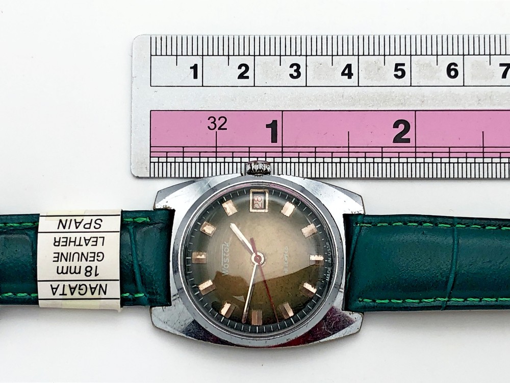 WOSTOK 2214 Vintage Wristwatch Vostok SU 18 Jewels USSR Serviced Watch Dark Green Dial, Green Leather Band, Calendar. Produced by the Chistopol Watch Factory Keeps good time and works well. Some age traces. Brand new leather band as a gift. See photos. Could be a great gift for someone you love or can be added to your collection. Contact me if any questions. I do offer combine shipping discount if you buy 2 items or more. I make shipments the next business day after the purchase. Buyer protection is in effect. Please watch the photos carefully as they are important part of description. Thanks for your interest. Have a look at some other lots at our store. 💛💙