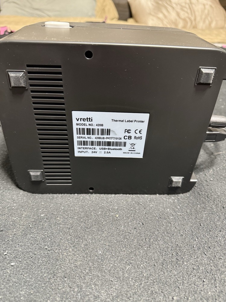 Manufacturer Warranty:1 YearCountry/Region of Manufacture:ChinaInput Type:MonochromeMaximum Resolution:203 x 203 DPIConnectivity:WirelessBrand:VrettiOutput Type:Black & WhiteFeatures:PortableType:Label PrinterSupported Paper Size:A6 (105 x 148 mm)Technology:Thermal