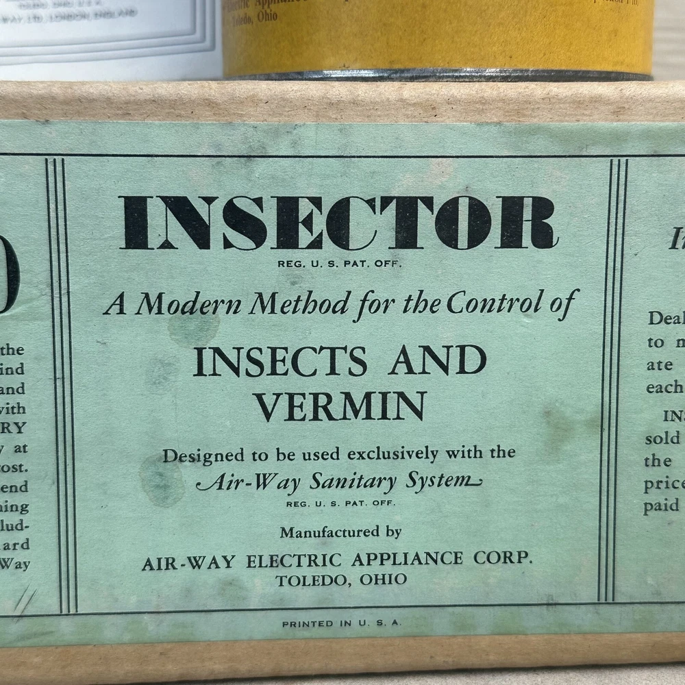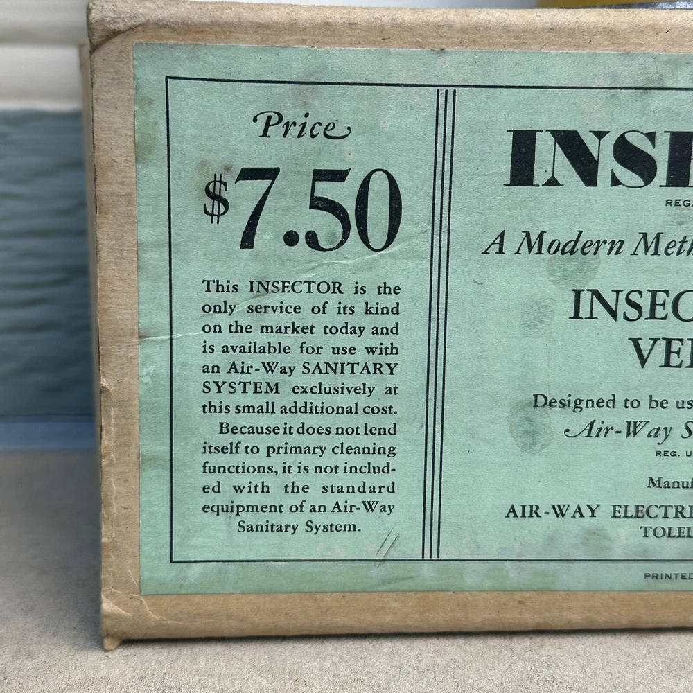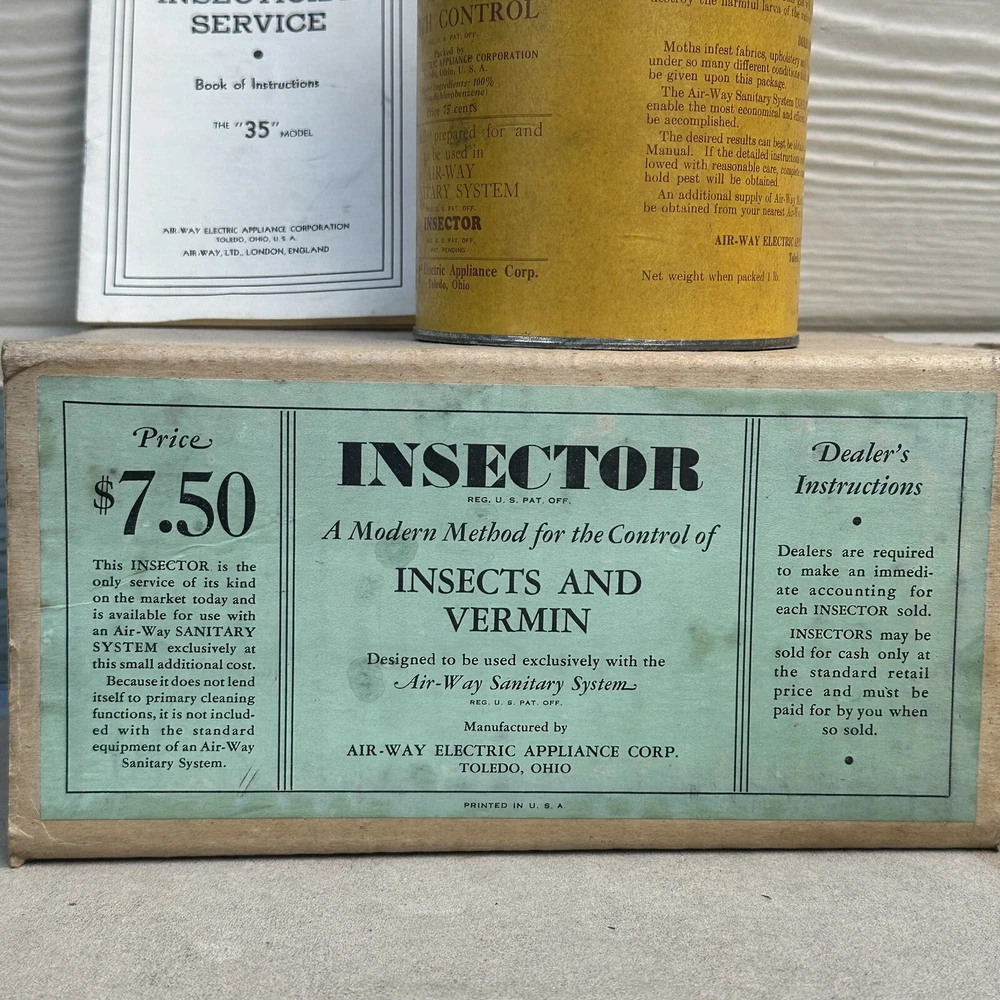 This vintage Air-Way Electric Appliance Corporation insect duster is a museum-quality piece from the 1920s. Made in the United States, it is a rare find for collectors of process engineering equipment. The unit quantity is one, and it is equipped with a sanitation system that makes it an efficient tool for insect control. The brand is well-known for its durability and effectiveness, and this duster is no exception. It is perfect for those interested in the history of process engineering equipment and, metalworking, and manufacturing. This item is a great addition to any collection and is sure to impress. Rare 1920's-!940's Air-Way Electric Corp. Vacuum Attachment In Original Box With Instructions ( some moth damage see pictures) With Attached Insecticide Canister Very Seldom Seen In Beautiful Shape Great Display Piece