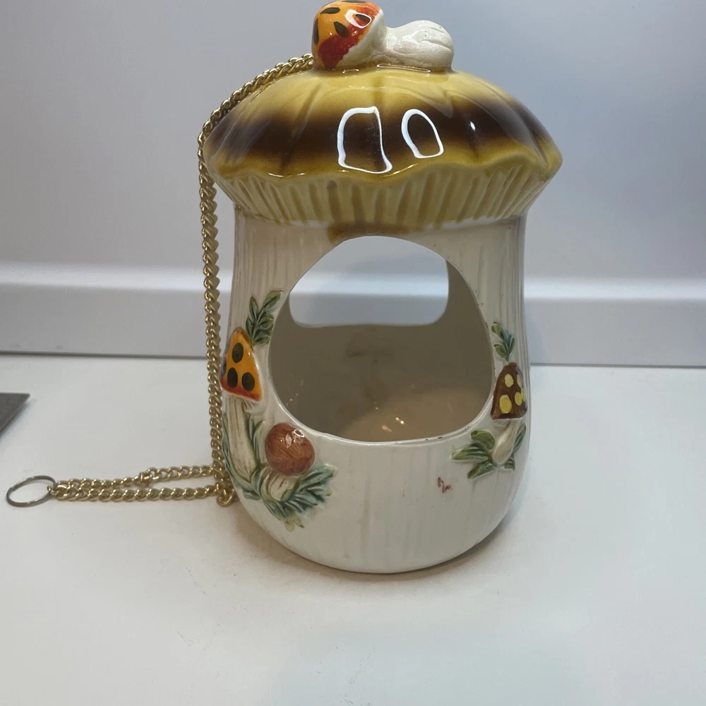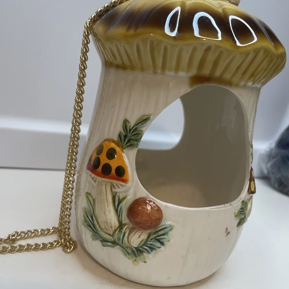 Vtg 1976 Sears Roebuck Co Merry Mushroom Hanging Planter/Bird Feeder Got little bit crazing and flea bites and dusty Overall good condition