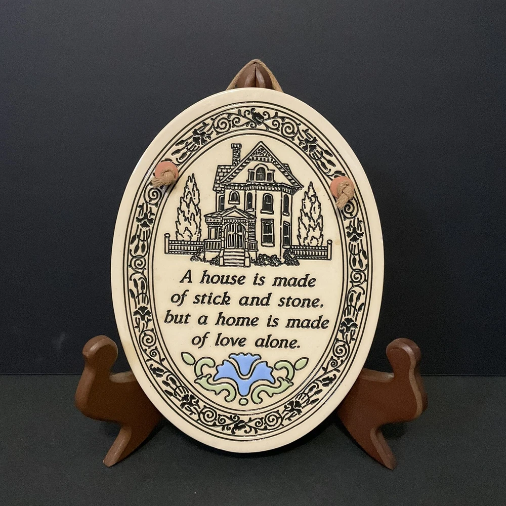 Welcome Phantom Fables Spooner Creek Wisconsin decorative art tile “ A house is made of stick and stone, but a home is made of love alone ” Leather hanging strap . Light wear , no cracks or chips Measurements take at widest point: Height-7.5 inches Width-5.5 inches