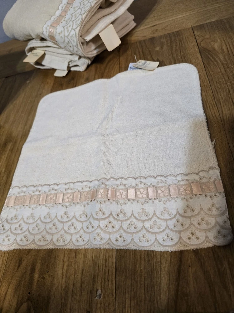 Beautiful set of 1 towel, 2 hand towels and 1 wash cloth Measurements: bath towel- 25" x 43" Hand towels- 16.5" x 26" Wash cloth- 12" x 12" Smoke free home Dog friendly home Fast shipping