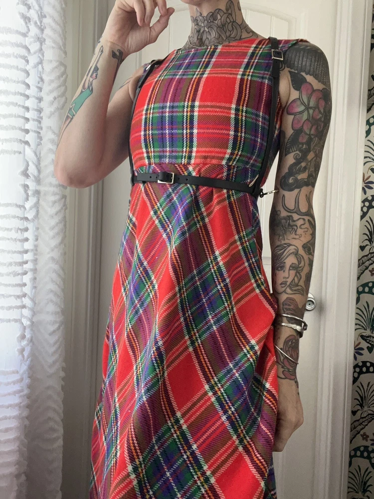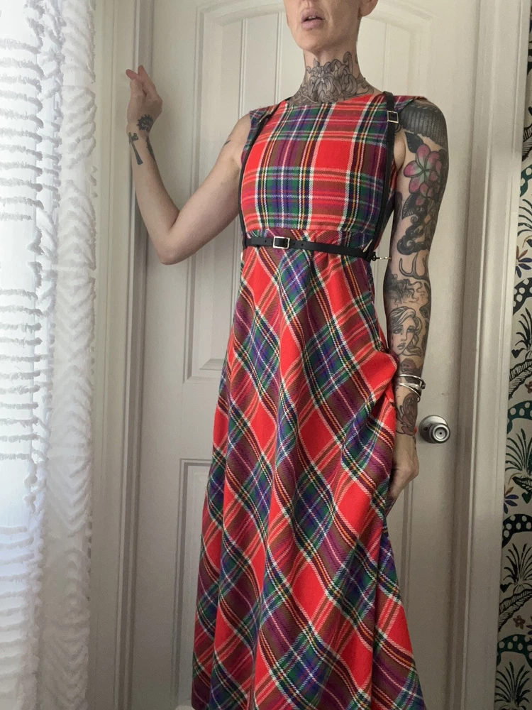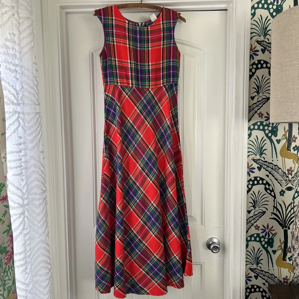 This 70’s dress stole my heart. So perfect for fall and winter. Tartan plaid with empire waist and midi length. Perfect with boots! Measures: Underarm: 16” Shoulder: 15.25” Length: 57” Empire: 13.75”