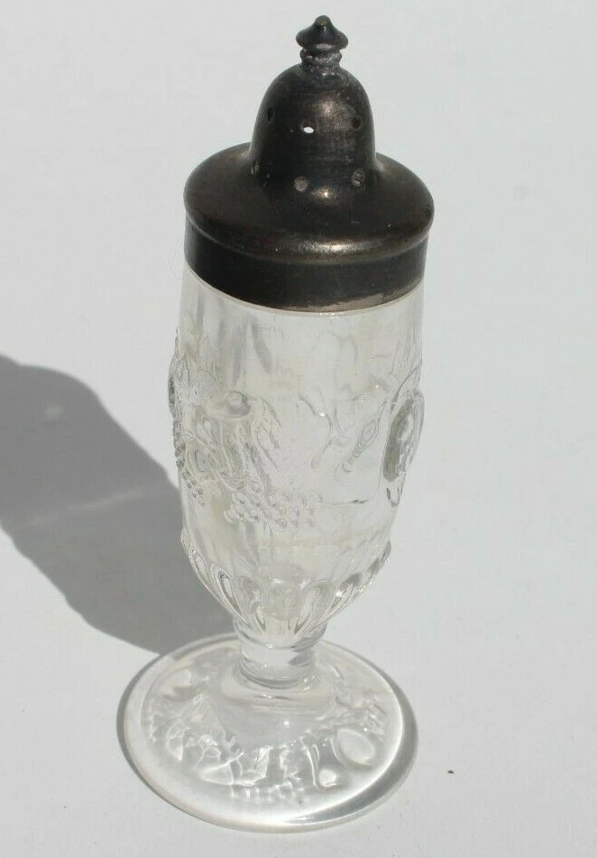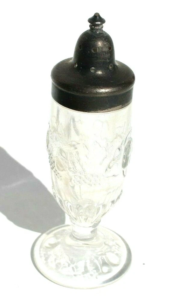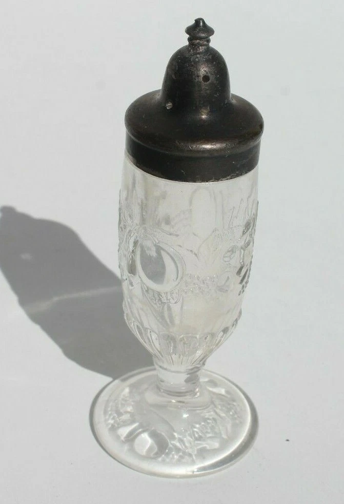 Vintage Antique Glass Kitchen Table Top Salt Shaker Sterling Silver Top Condition: Excellent (See Photos For More On Condition) Top Needs To Be Polished, Glass Has Fruit Designs On It. 5" Tall CHECK OUT MY OTHER ITEMS LIKE THIS FOR SALE (BIN C3)