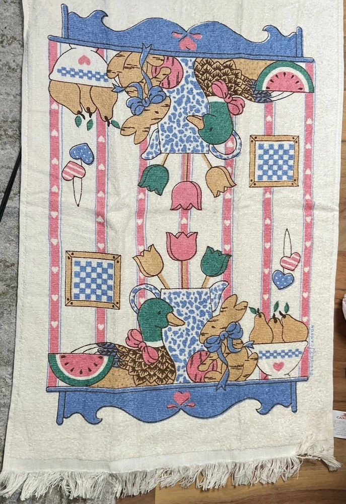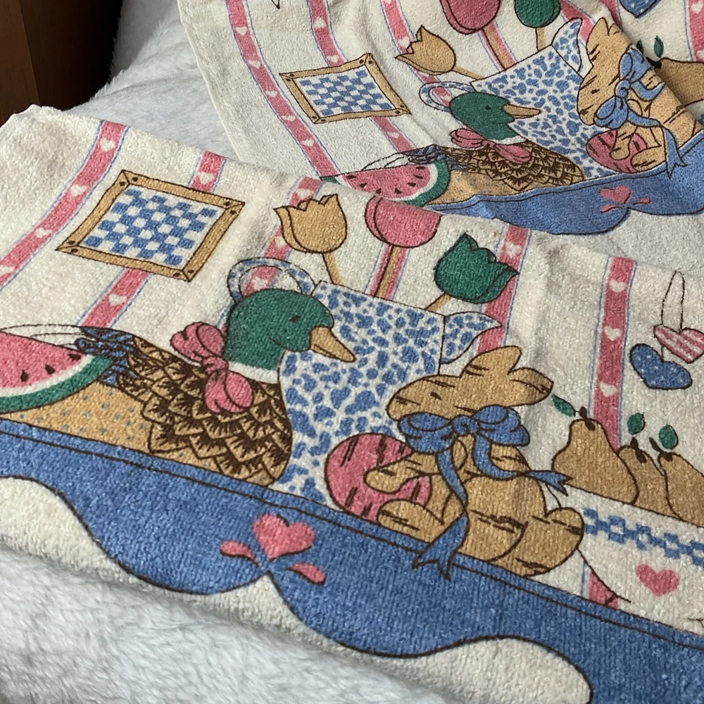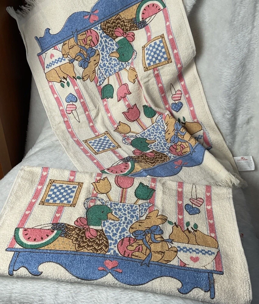 Lot of 2 vintage Cannon tea towels/kitchen towels Spring/Easter ducks and bunnies New never used with original tags measures 24x16" never washed
