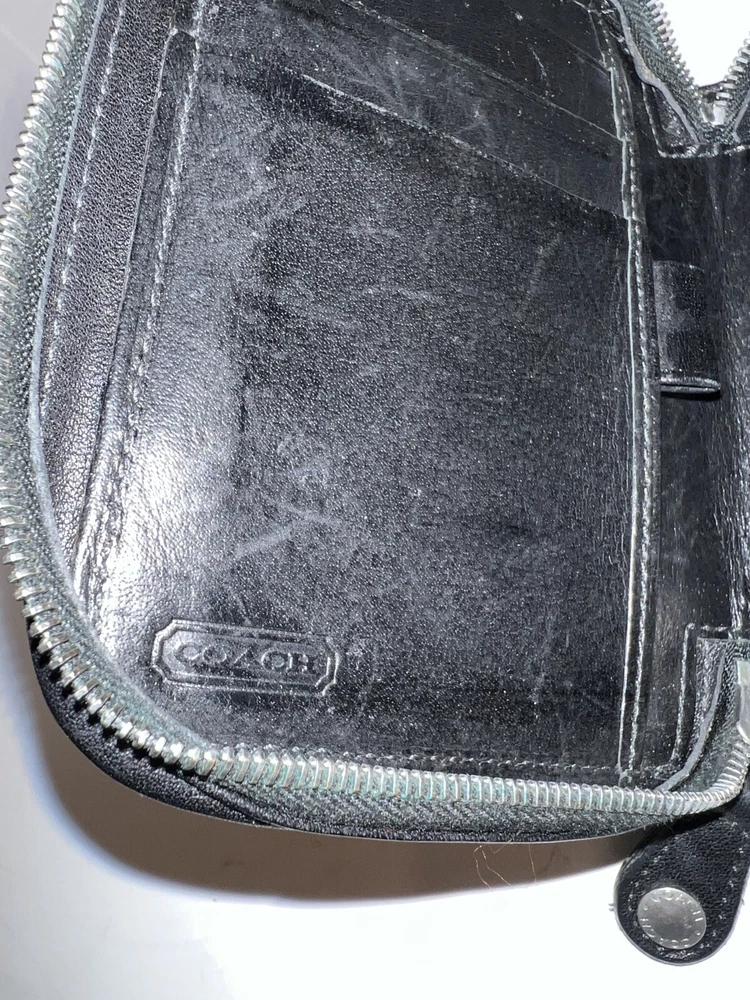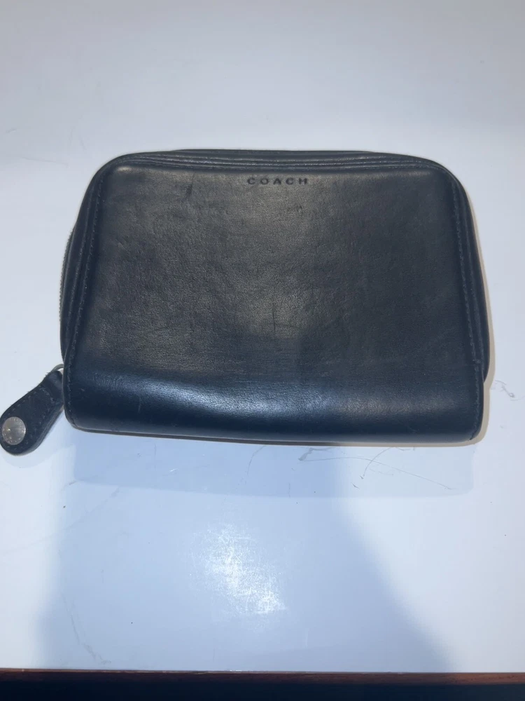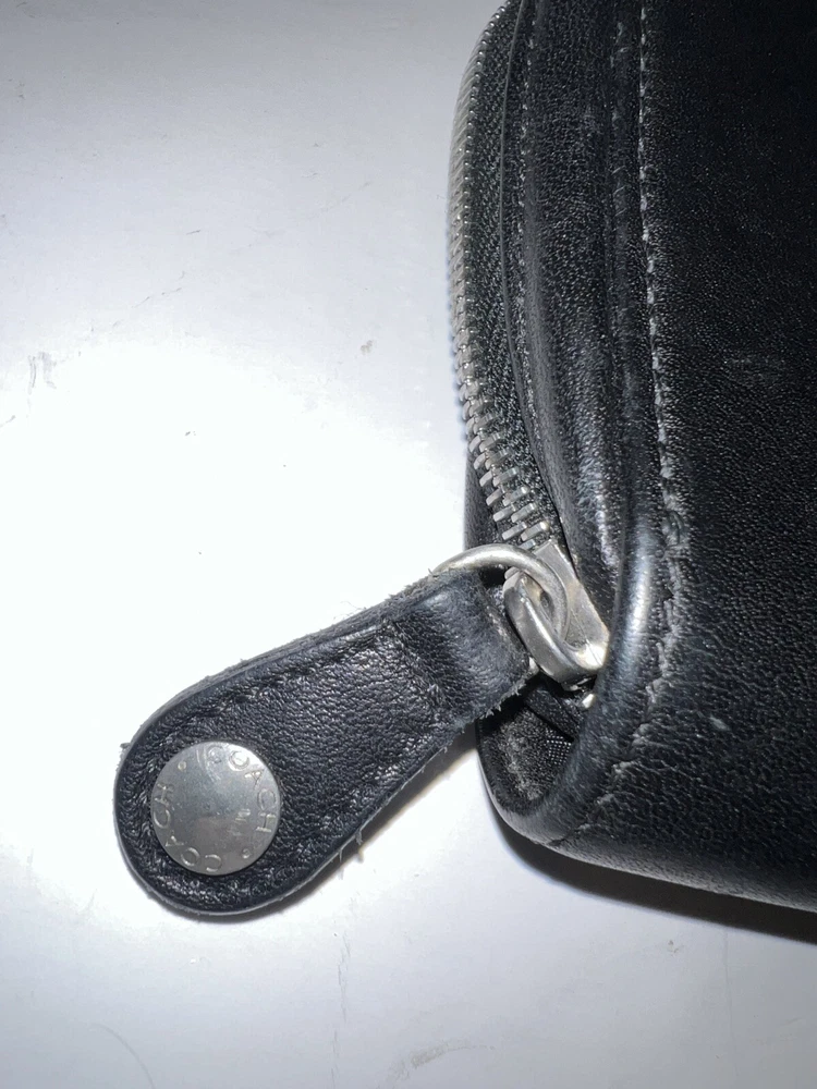 Vtg Coach Black Leather 4566c Zip Around Organizer Travel Pouch Wallet 5x5”