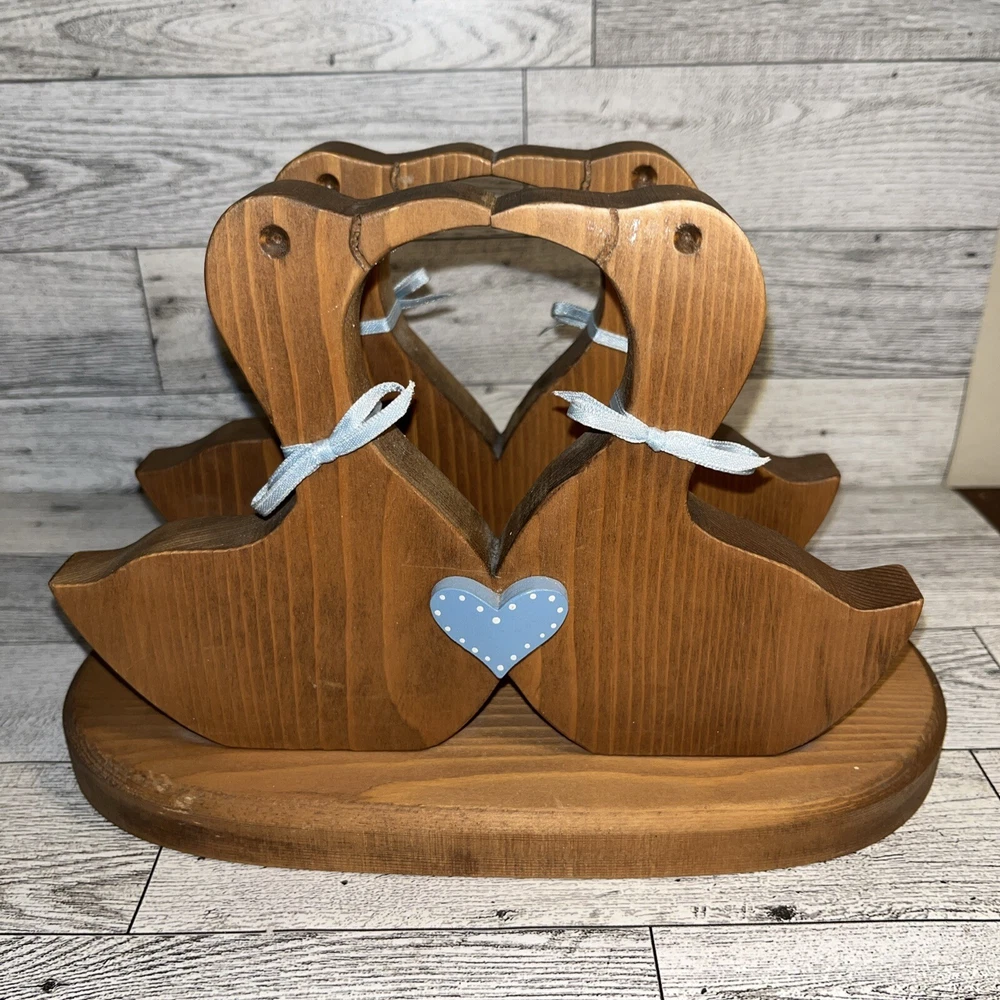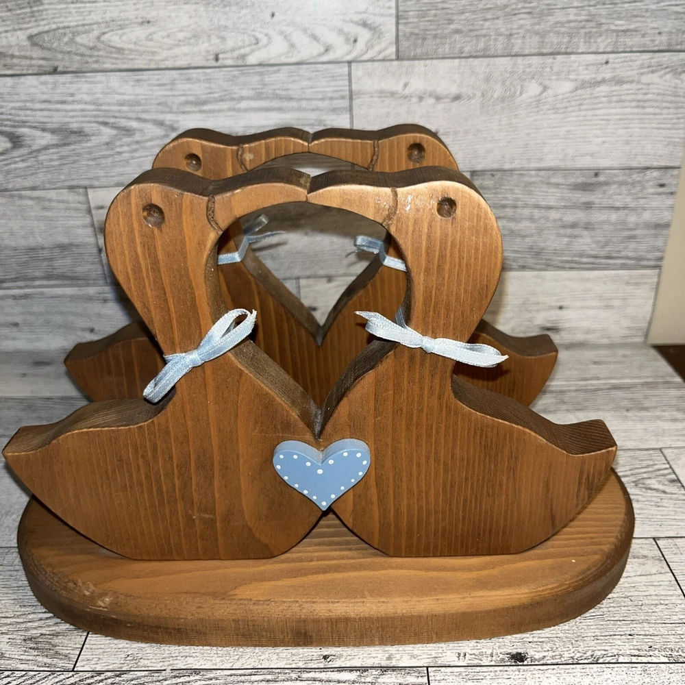 Very Good Condition! - a few small stains on bottom & what looks like white paint on 1 duck. Please see photos for more details. This vintage handcrafted wooden napkin/mail holder is a charming addition to any home decor. The cute design features four ducks and measures approximately 6" x 9" x 5". Perfect for holding napkins, mail, or other small items, this holder is both functional and stylish. Crafted with care, the napkin/mail holder is made from high-quality materials and showcases a skilled artisan's touch. The wood item falls under the "Crafts", "Handcrafted & Finished Pieces", and "Home Décor & Accents" categories, making it a versatile addition to any collection. Add this unique piece to your home today!