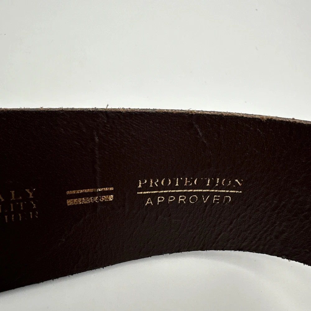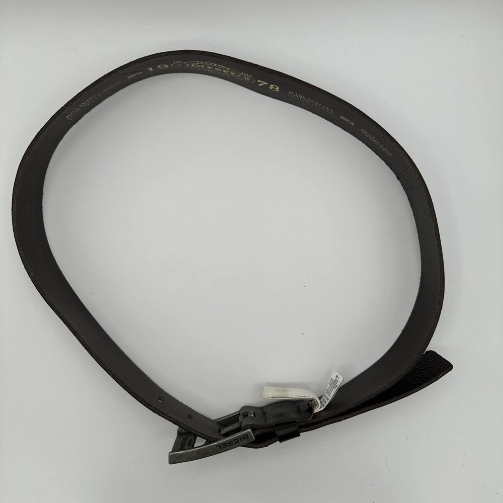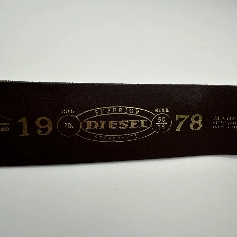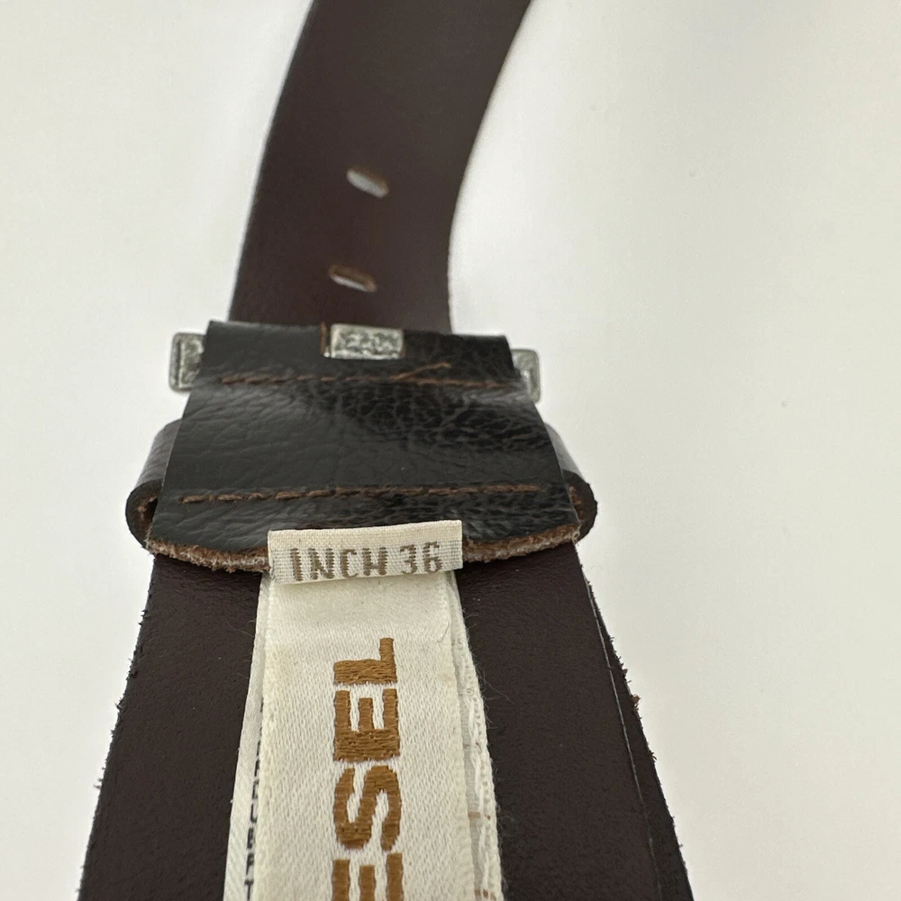 Elevate your style with this vintage Diesel belt, crafted from high-quality Italian leather. The distressed strap adds a touch of class to any outfit, while the adjustable buckle ensures a comfortable fit. This unisex belt is perfect for both casual and work wear, and the solid pattern and brown color make it a versatile addition to your wardrobe. The 1.7" width and cow leather material make this belt a durable and reliable choice. Handmade in Italy, this belt features a distressed Italian leather strap and is suitable for regular-sized adults. The timeless design and quality theme make this belt a must-have for any fashion-conscious individual.