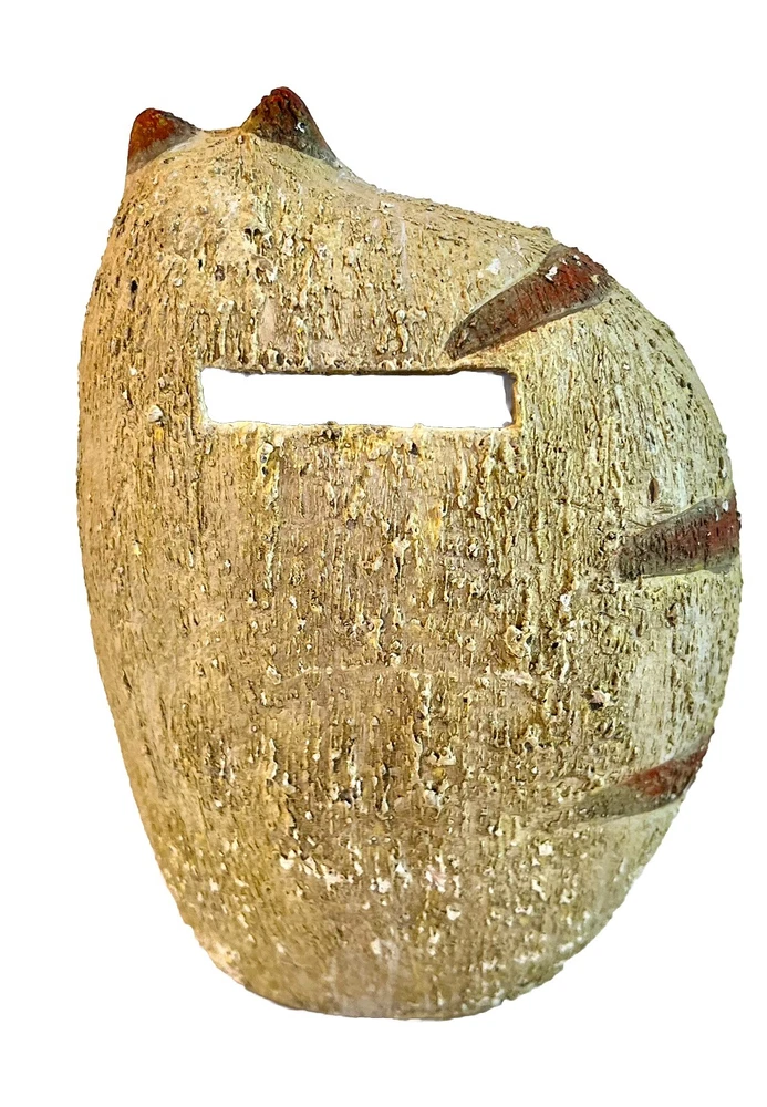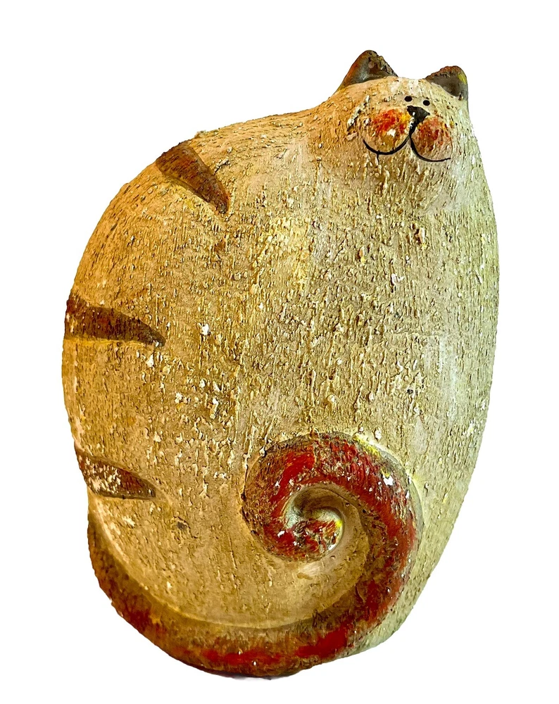 Vtg Art Pottery Fat Cat Still Bank Piggy Coin Band Red Ceramic Clay Novelty 6” x 4” x 3” in very good collectors display quality vintage used condition crisp clean vibrant no chips cracks breaks or stains has normal natural vintage patina from age use handling and storage. Please see pictures we are here to assist and answer questions. Ships USPS mail package from Roswell New Mexico. Be sure to follow us we post new vintage antique and unique items daily