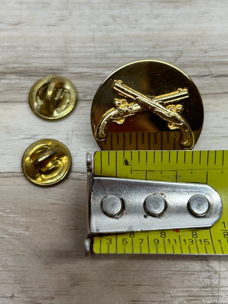 Vtg Insignia WW II US Military Police Crossed Pistols Golden Tone Pin Set Of 2.Never used-have some minor signs of age-please see all pictures for details