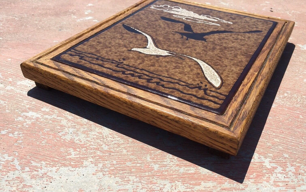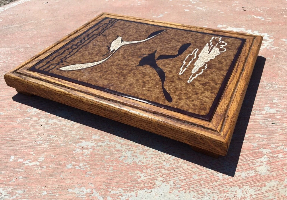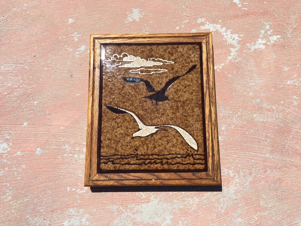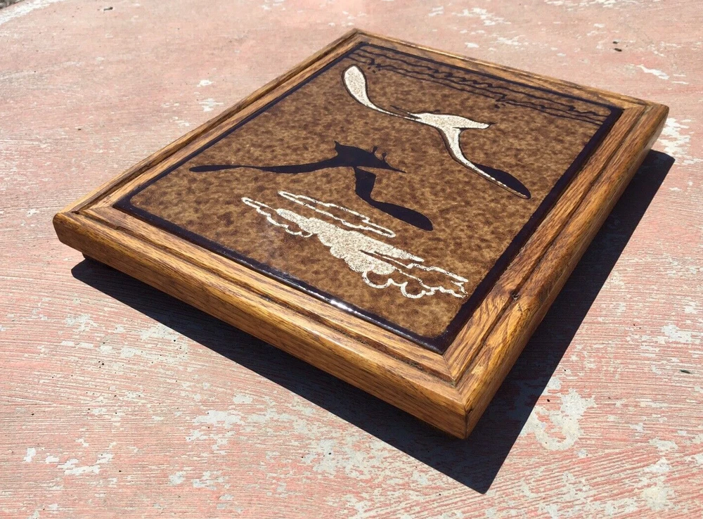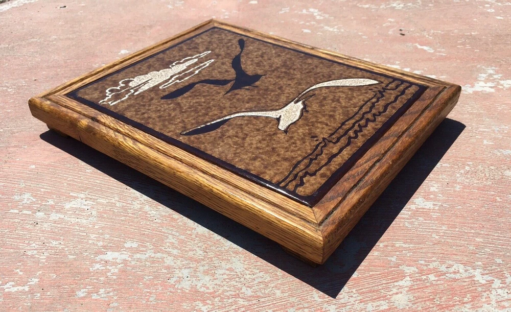 Italian Ceramic Tile Trivet Birds in Flight Seagulls Wood Frame Signed Cabbiani 1992 in excellent condition as can be seen in attached photos. Measures 11 3/4 x 9 3/4 x 1 3/4" footed with felt to prevent scratching. Please review all actual item pictures to further describe condition and to show any other imperfections. Comes from a smoke free, pet free home. Along with "recycling" items of yesteryear, I emphasize the importance of environmental safety and not abusing our Earth's natural resources. Recycled materials may be used when packing merchandise and will not compromise the integrity of safe delivery.
