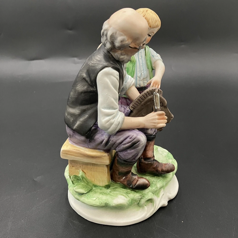 This vintage Lefton figurine depicts agrandpa, boy, and family theme. The hand-painted porcelain figurine stands at 6.5 inches tall and 4.5 inches wide. The figurine is made in Japan and has a matte finish. The figurine is perfect for all occasions and is a great addition to any collection. It features whittling and woodworking subjects, along with traditional style and multicolor. The item comes with one figurine, and the brand is Lefton. This collectible is ideal for those who enjoy family, people, and love themes. CONDITION: Pre-owned in excellent condition. No chips, cracks, damage. ****SHIPS NEXT BUSINESS DAY****