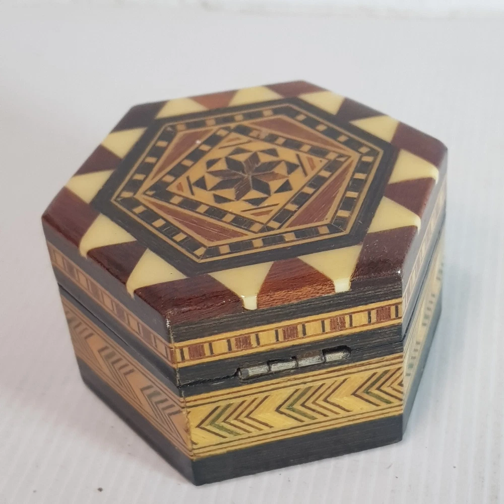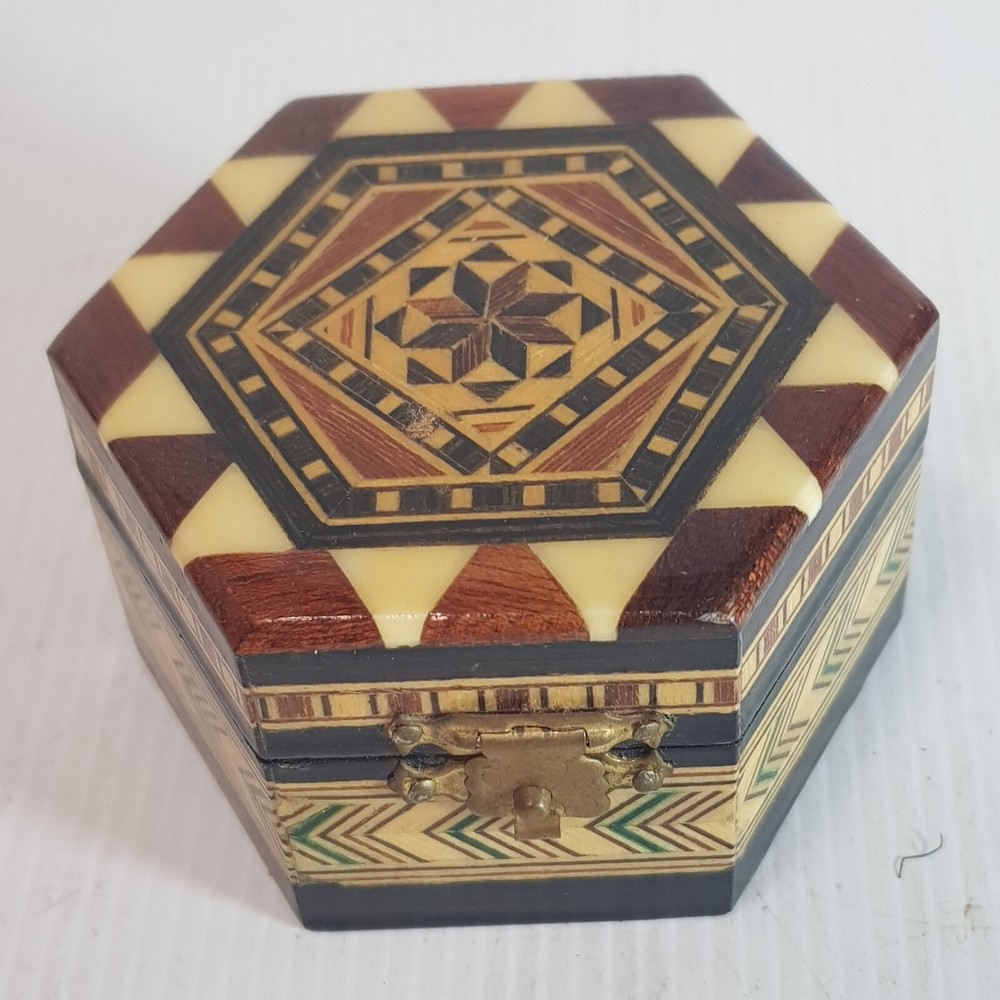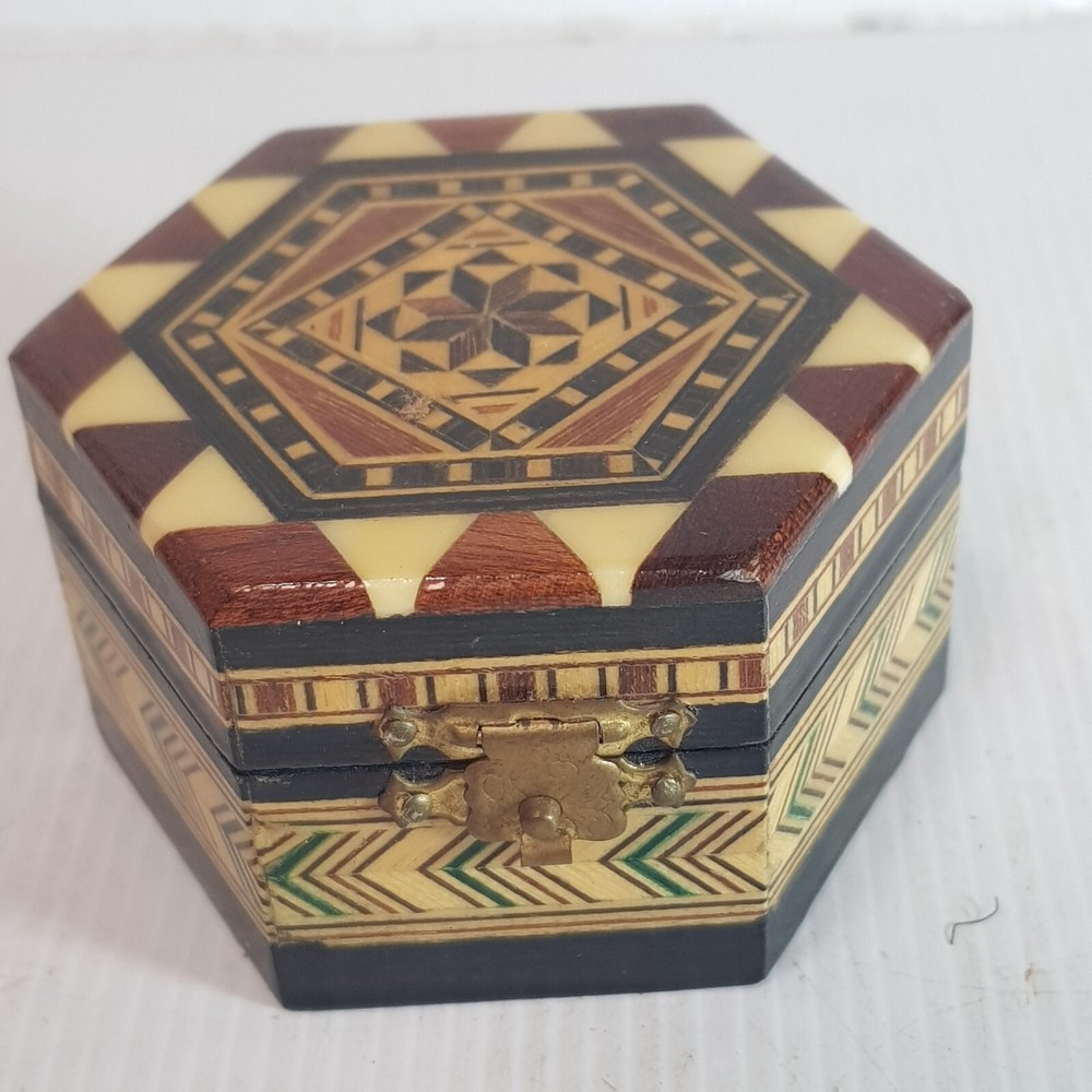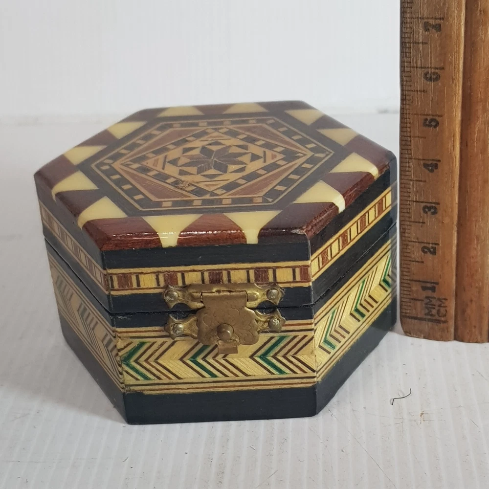 A really lovely inlaid trinket box. Perfect for rings or jewelery.