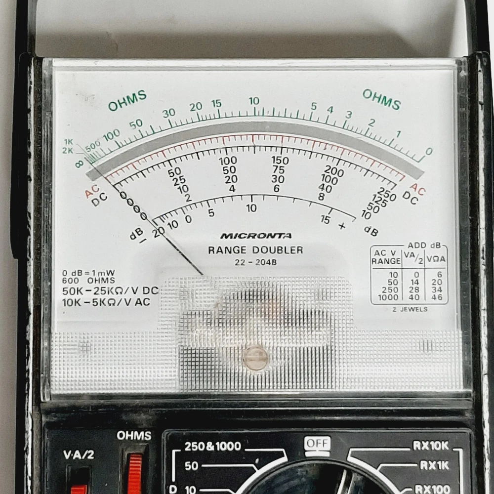 Features:VintageDC Voltage Range:50,000Display:AnalogueBrand:MicrontaSeller Notes:“Fully tested and works great - NO LEADS”MPN:22-204AForm Factor:HandheldUPC:Does not applyTest/Measurement Functions:AC Voltage, Continuity Test, DC Current, DC Voltage, Resistancegtin13:Does not apply