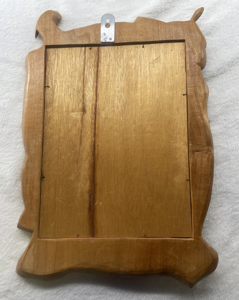 Hand Carved Wood Mirror Tiger Cutout Oak VTG Wall Art Accent One Of A Kind 15”