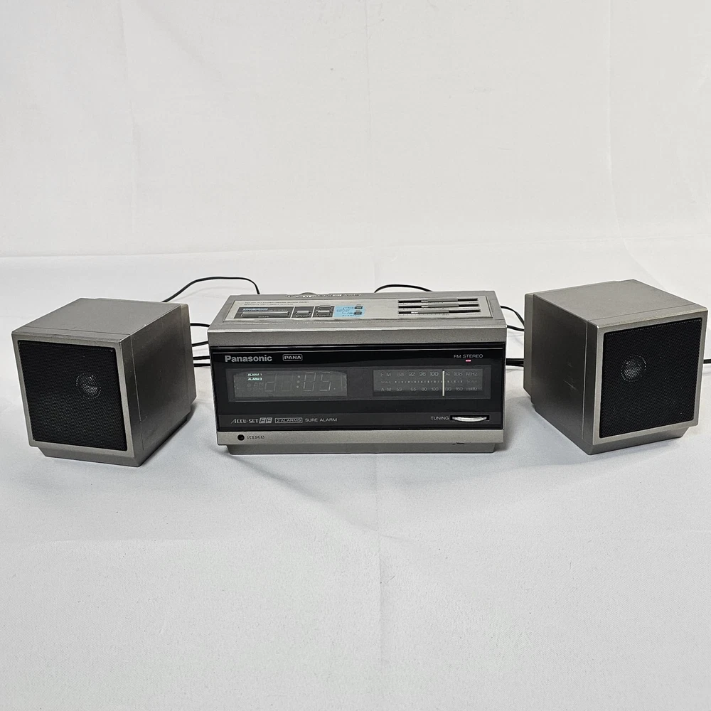 Vtg Panasonic Accu-Set Alarm Clock AM/FM Radio RC-X310 With Original Speakers. Good Condition, Everything Works Great. Ships Out Free Within One Business Day.