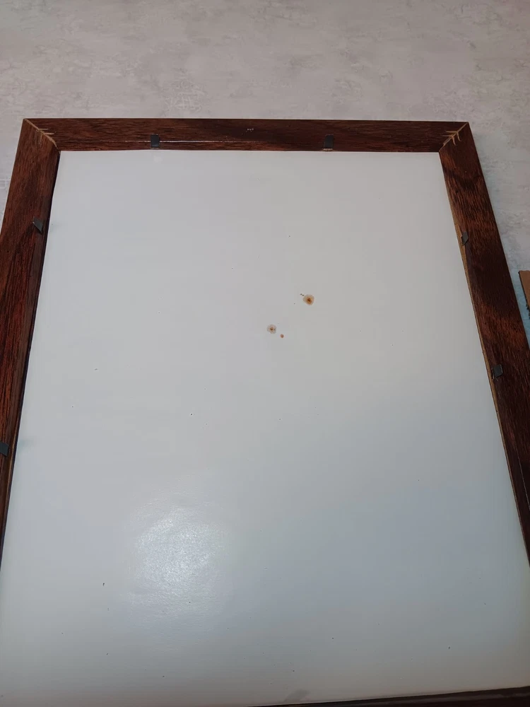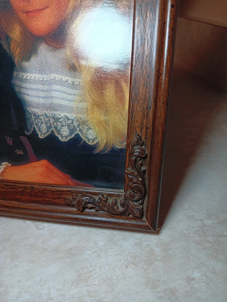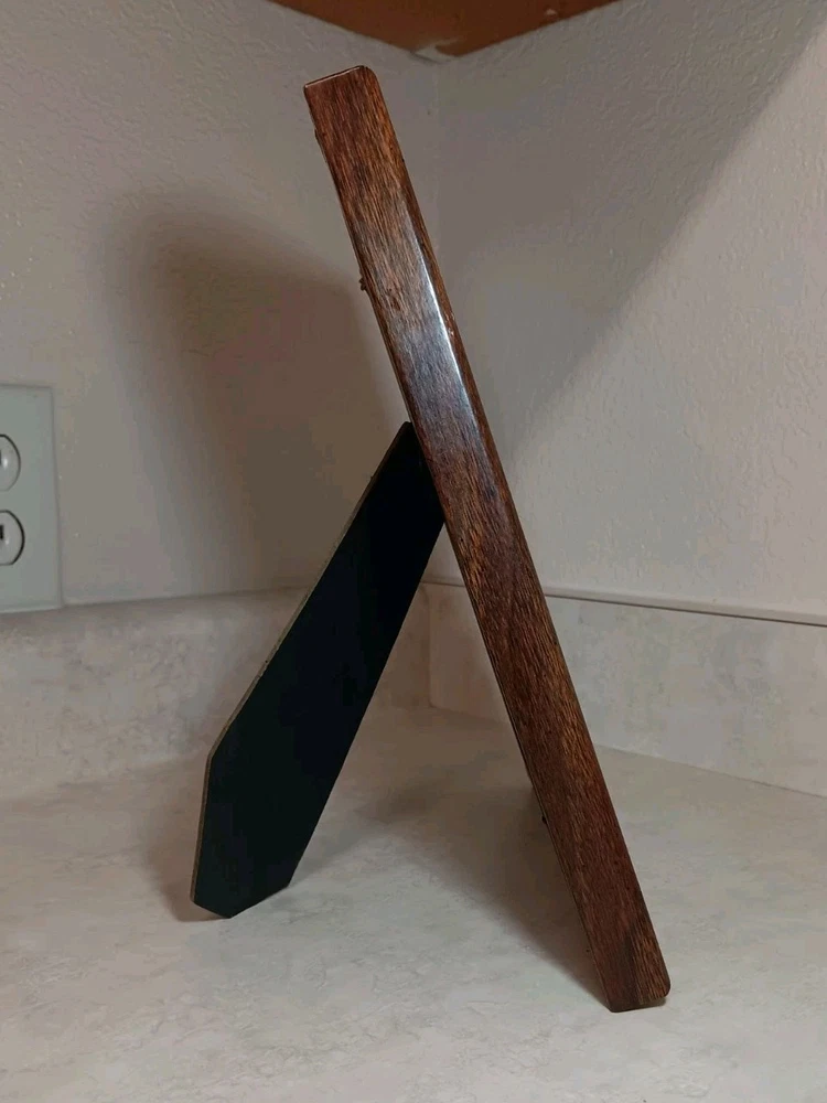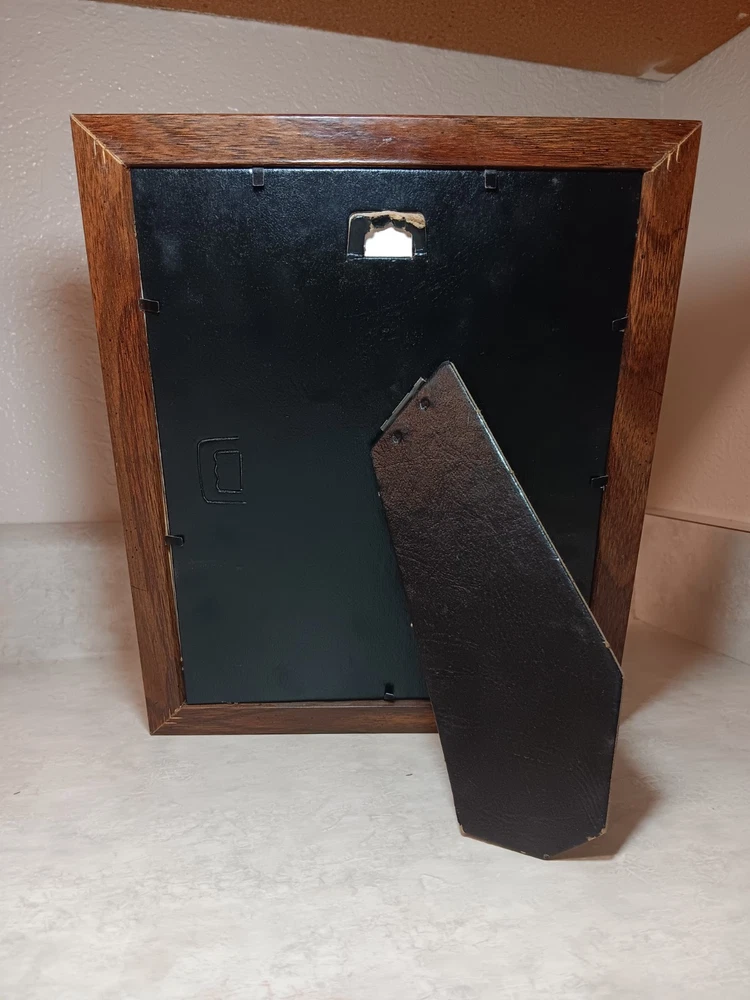 DAMAGE: The hanging mechanism on the back is worn for hanging vertical. Can also be placed on tabletop or hung horizontally! Approx Dimensions: Height: 10.5" Width: 9.5" Thickness: 1"