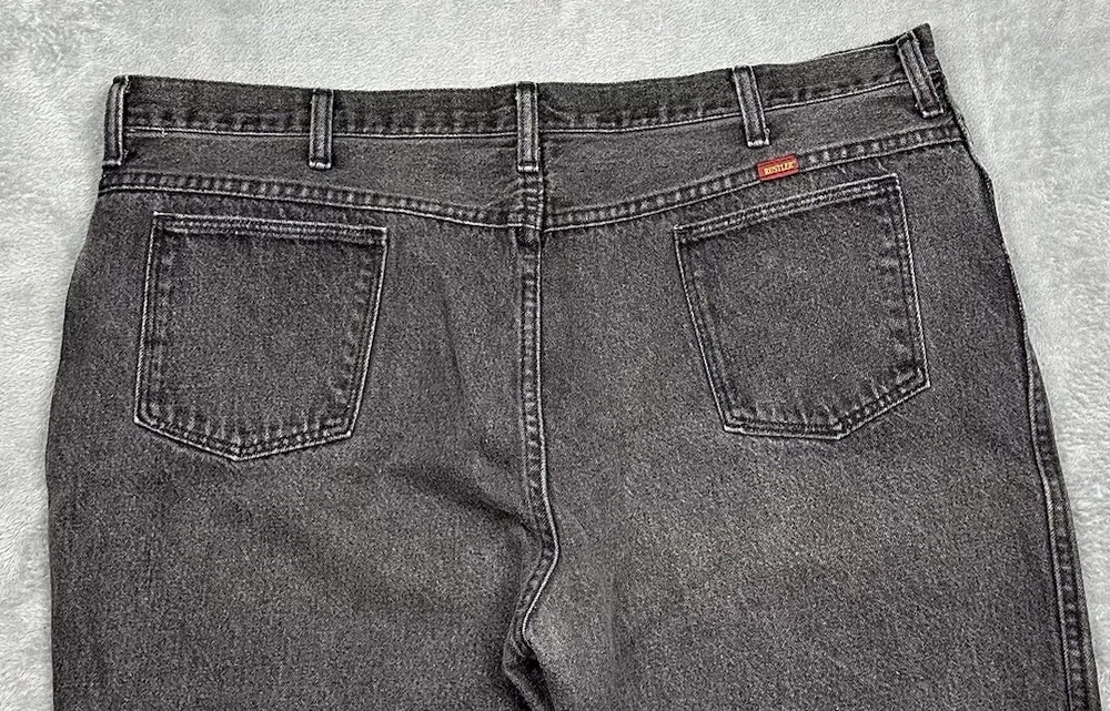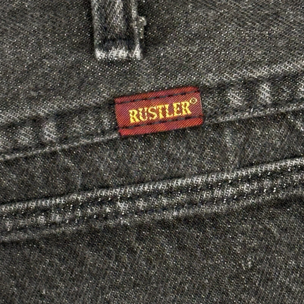 Vtg Rustler Jeans Mens 46x32 (Fit 42x27.5 Hemmed} Faded Black Straight USA READ One small hole in each bottom portion of pant leg and faded but otherwise in good pre-owned condition and laundered. Please see measurements in photos. I ship next business day, but sometimes same business day and Saturday if order is paid for early enough. Please let me know if you have any questions. I am open to offers!! Feel free to look at other items in my store! Thanks!