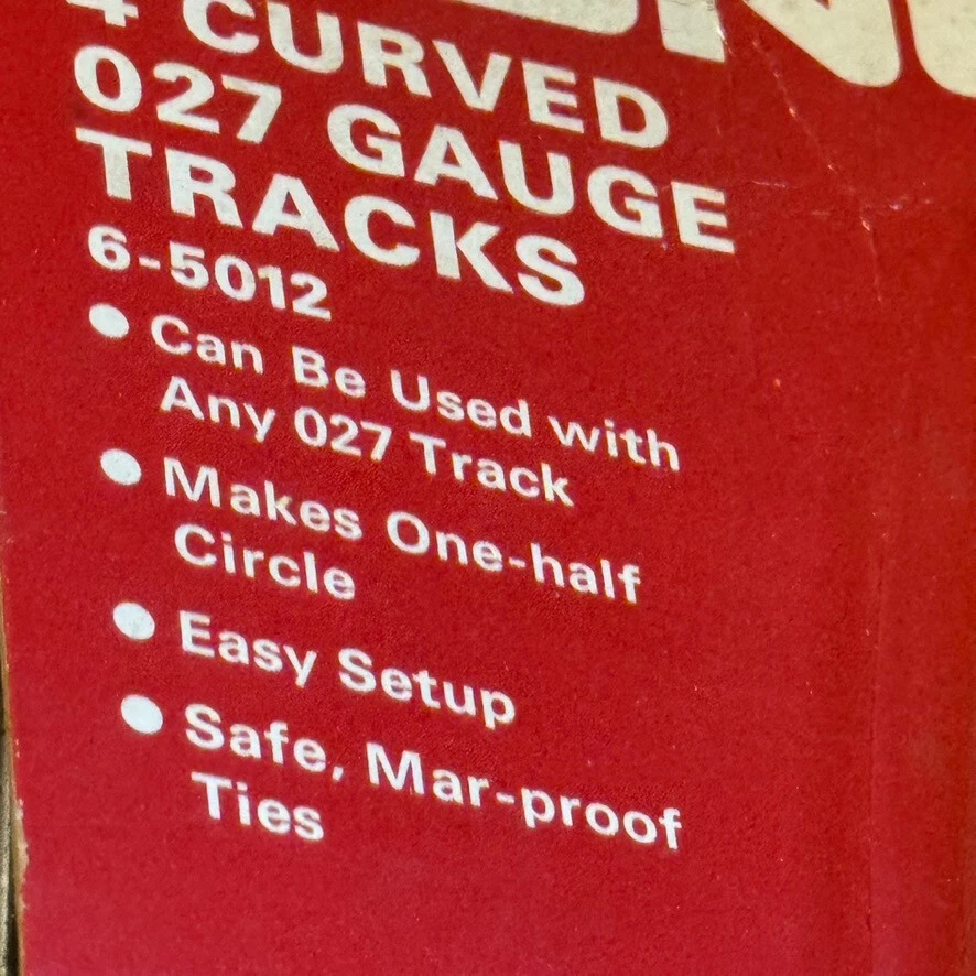 Enhance your collection with these two brand new and sealed Lionel train tracks. Designed for O-27 gauge, these four curved tracks (6-5012) come in a sleek silver color with a length of 10 inches and a width of 2 inches. Made in the United States, these vintage tracks are sure to add a touch of history to your model railroad and train set. Perfect for enthusiasts or collectors, these tracks are a great addition to any collection. Total 8 tracks total. Contact me with any questions. Thanks for looking.
